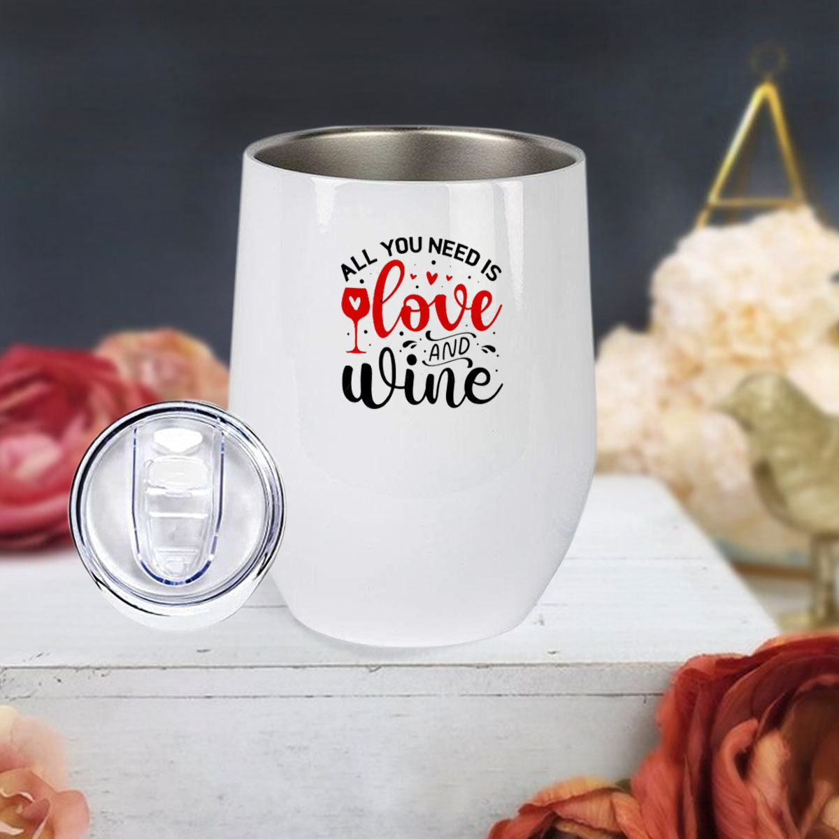 All You Need Is Love & Wine Stainless Steel Wine Mug 350ml(12oz)