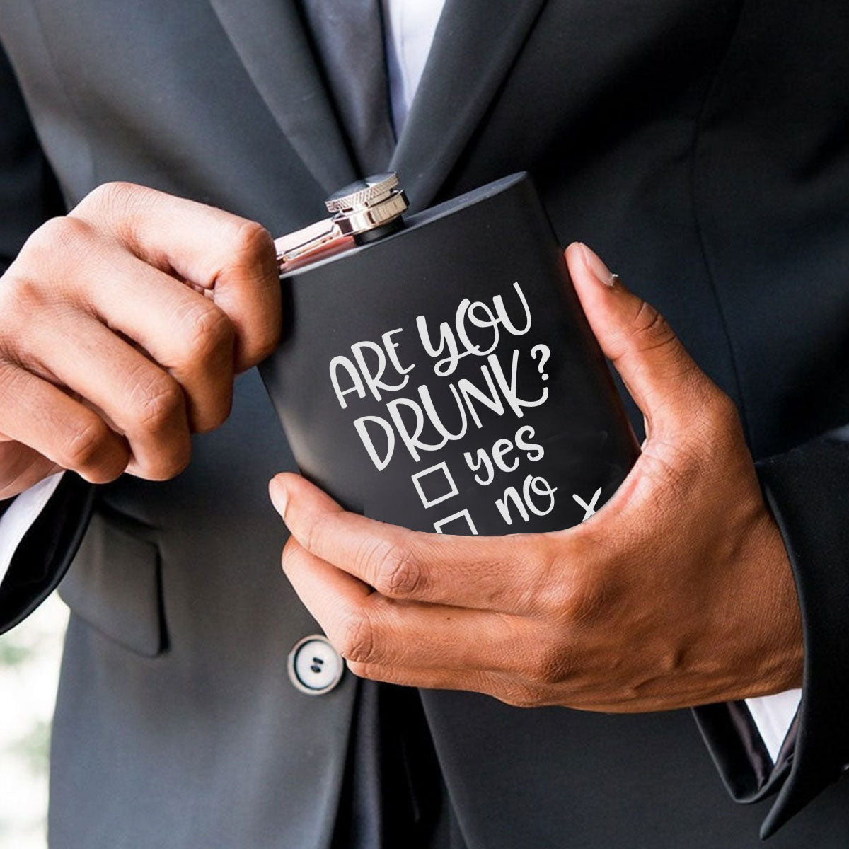 Stainless Steel Engraved Hip Flask Design - Are You Drunk Yes Or No
