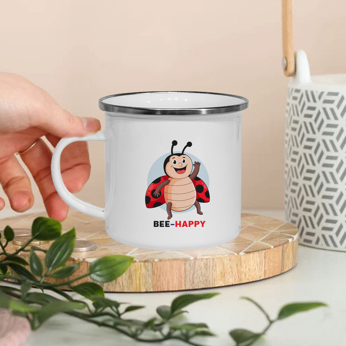 Bee Happy Enamel Mug