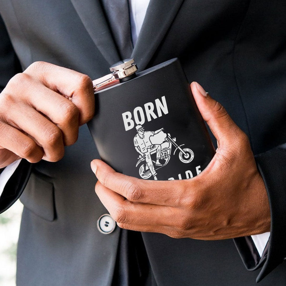 Stainless Steel Engraved Hip Flask Design - Born To Ride