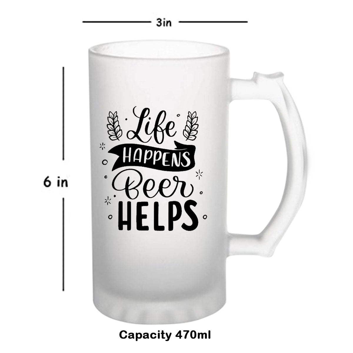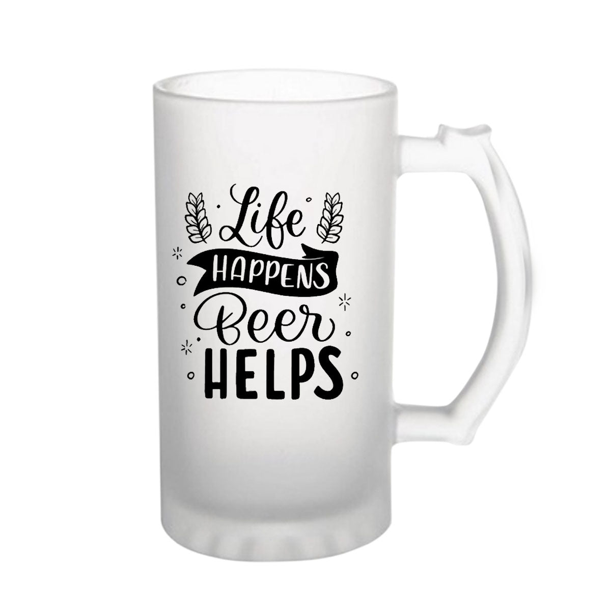 Life Happens Beer Helps 160z (470 ml) Frosted Beer Mug