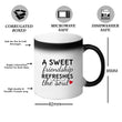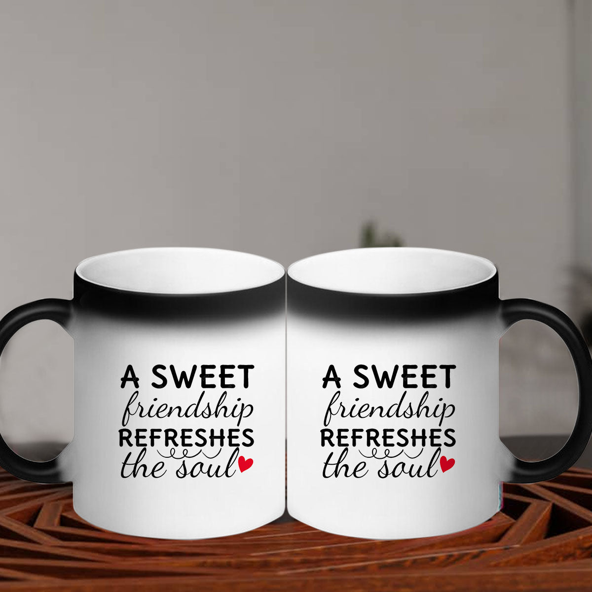When your friend pours a hot beverage, such as coffee, tea, or hot chocolate, into the mug, an extraordinary transformation takes place. Like a magical spell, the black exterior of the mug starts to fade away, revealing a hidden design underneath. It could be a heartwarming message, a beautiful friendship quote, or even a personalized photo of you and your friend together.
