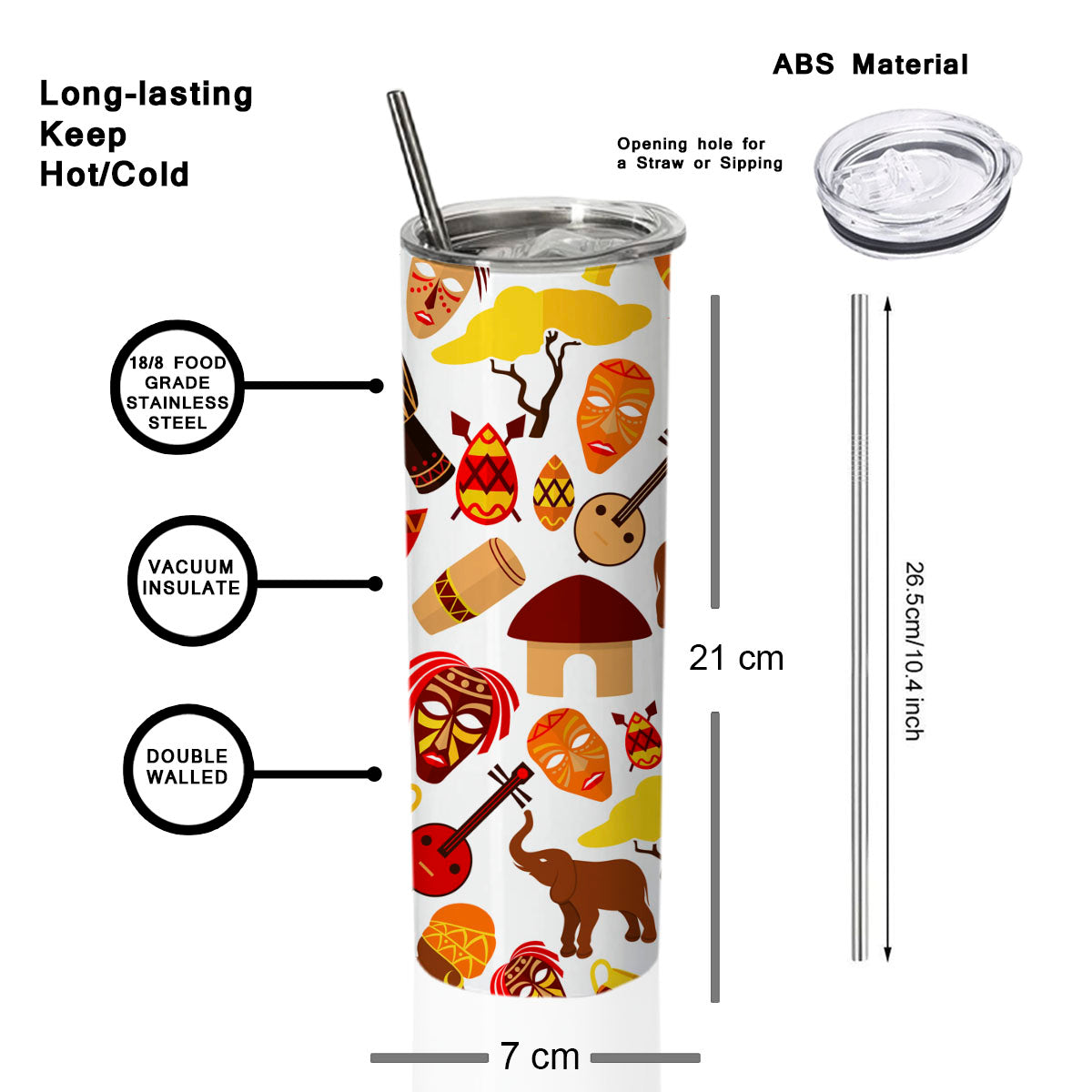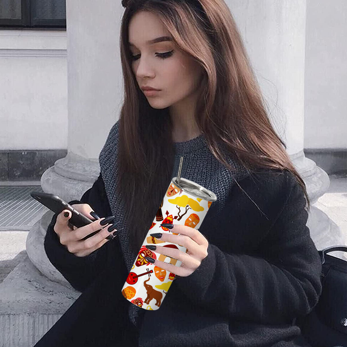 Chillaao Africa jungle ethnic tribe travel pattern skinny tumblers