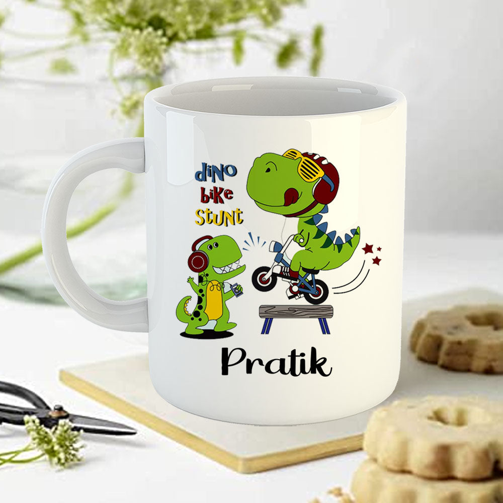 Chillaao Dino Bike Stunt White Mug