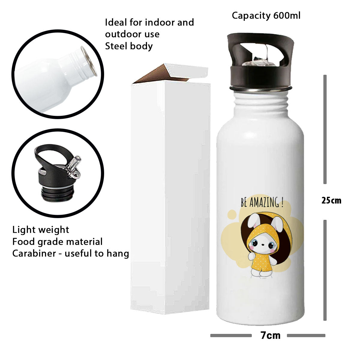 Need to release our environment and ourselves from unhealthy lifestyle? How? One step at a time. Lets start with eradicating plastic bottles from our lives. Chill-aao introduces high grade stainless steel bottle. The single walled bottle is sure to enhance your travel experience and a perfect add-on to your kitchen collection. The sipper lid and the wide mouth of the bottle caters to double usage. It is light weight and handy making it very convenient to carry it to the gym or even sending it with kids for school. The unique, quirky and funny prints guarantee to bring smile to your loved ones. Gift it to your friends, mom, dad, brother, sister, colleagues, cousins, boyfriend, girlfriend. Eco-friendly and are designed using the sublimation technology with the finest quality inks. The prints are scratch resistant and do not fade or come out with time and use. The product is printed against your order. The actual print may vary a bit.