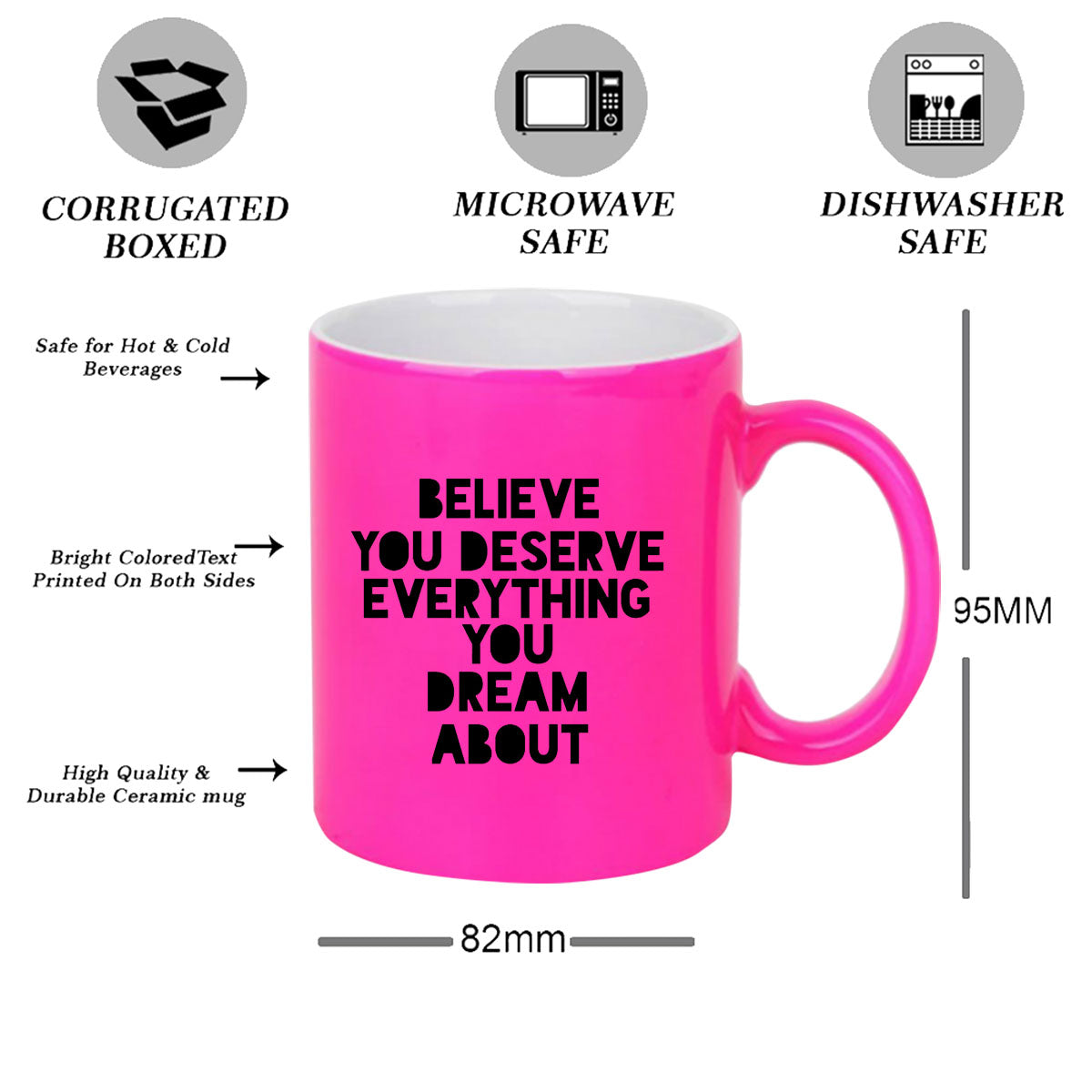 “Isn't it amazing how the world begins to change through the eyes of a cup of coffee”, why not to change it with a better start. Chill-aao.com let you shift from the regular coffee mugs to the newly introduced collection of Neon color mugs. The bright radiant colors are an absolute eye-catcher. The unique, quirky and funny prints guarantee to bring smile to your loved ones. Gift it to your friends, mom, dad, brother, sister, grandfather, grandmother, colleagues, cousins, girlfriend, boyfriend. Caters to all the important occasions of your life like birthdays, anniversaries, special days like friendship day, mother’s day, father’s day, valentine’s day, also can be gifted as a return gift. The mugs are made of white hard ceramic and are designed using the sublimation technology with the finest quality ecofriendly inks. The prints are scratch resistant and do not fade or come out with time and use. The size of the mug is perfect to accommodate a perfect amount of tea/coffee to start your day with. The product is printed against your order. The actual print may vary.