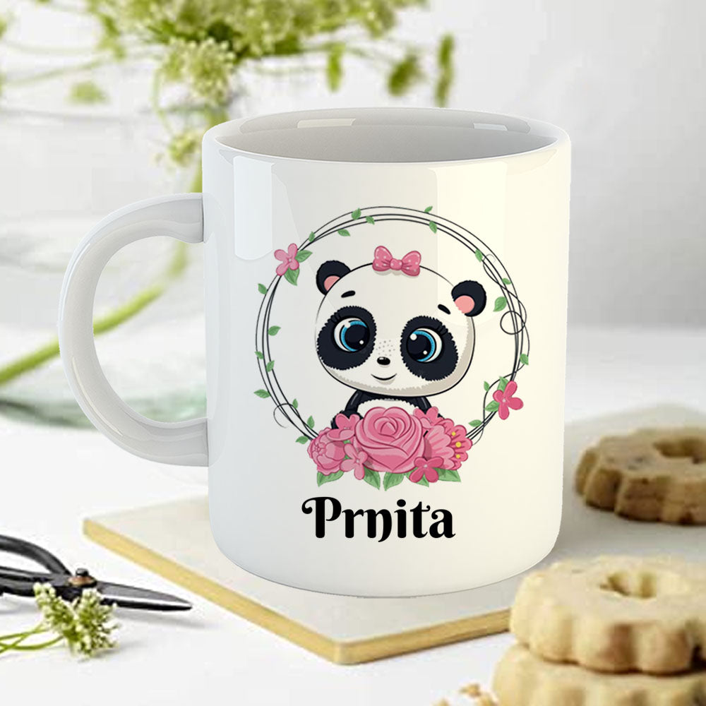 Chillaao Cute Panda Flower Personalised White Mug