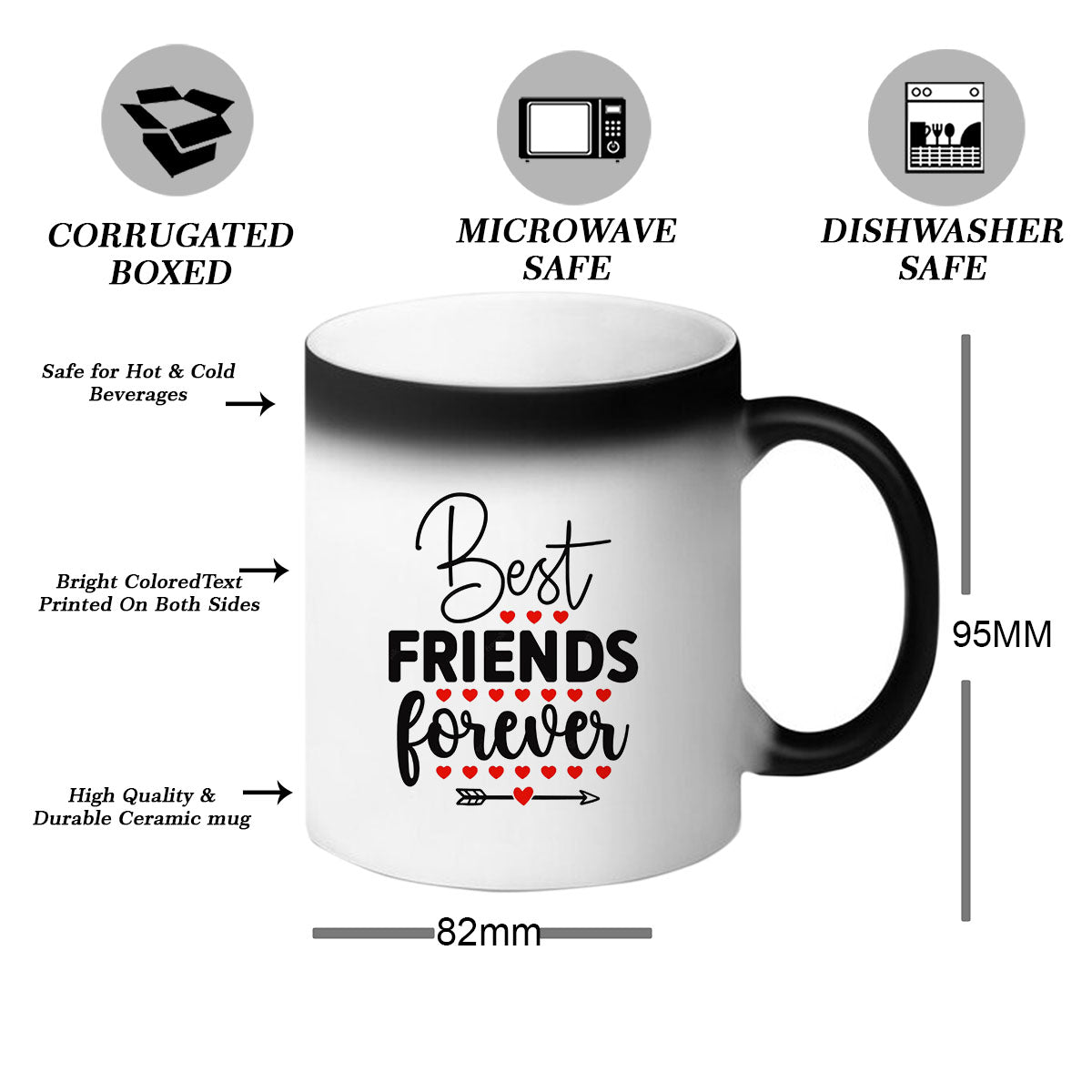 When your friend pours a hot beverage, such as coffee, tea, or hot chocolate, into the mug, an extraordinary transformation takes place. Like a magical spell, the black exterior of the mug starts to fade away, revealing a hidden design underneath. It could be a heartwarming message, a beautiful friendship quote, or even a personalized photo of you and your friend together.