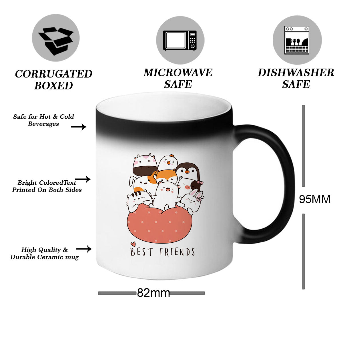 When your friend pours a hot beverage, such as coffee, tea, or hot chocolate, into the mug, an extraordinary transformation takes place. Like a magical spell, the black exterior of the mug starts to fade away, revealing a hidden design underneath. It could be a heartwarming message, a beautiful friendship quote, or even a personalized photo of you and your friend together.