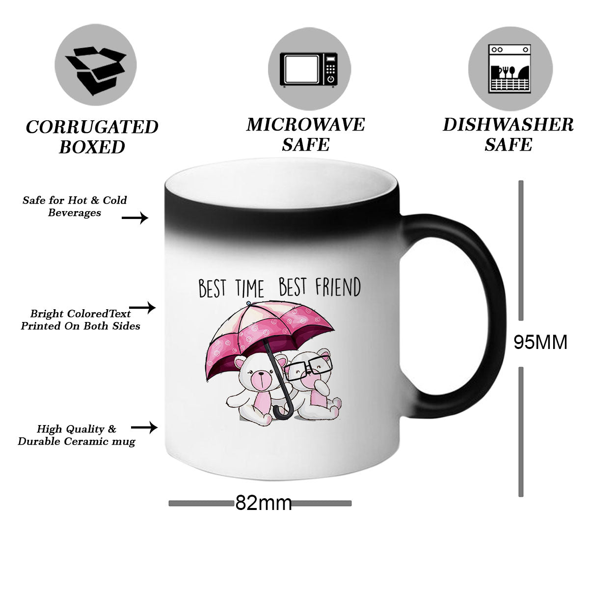 When your friend pours a hot beverage, such as coffee, tea, or hot chocolate, into the mug, an extraordinary transformation takes place. Like a magical spell, the black exterior of the mug starts to fade away, revealing a hidden design underneath. It could be a heartwarming message, a beautiful friendship quote, or even a personalized photo of you and your friend together.