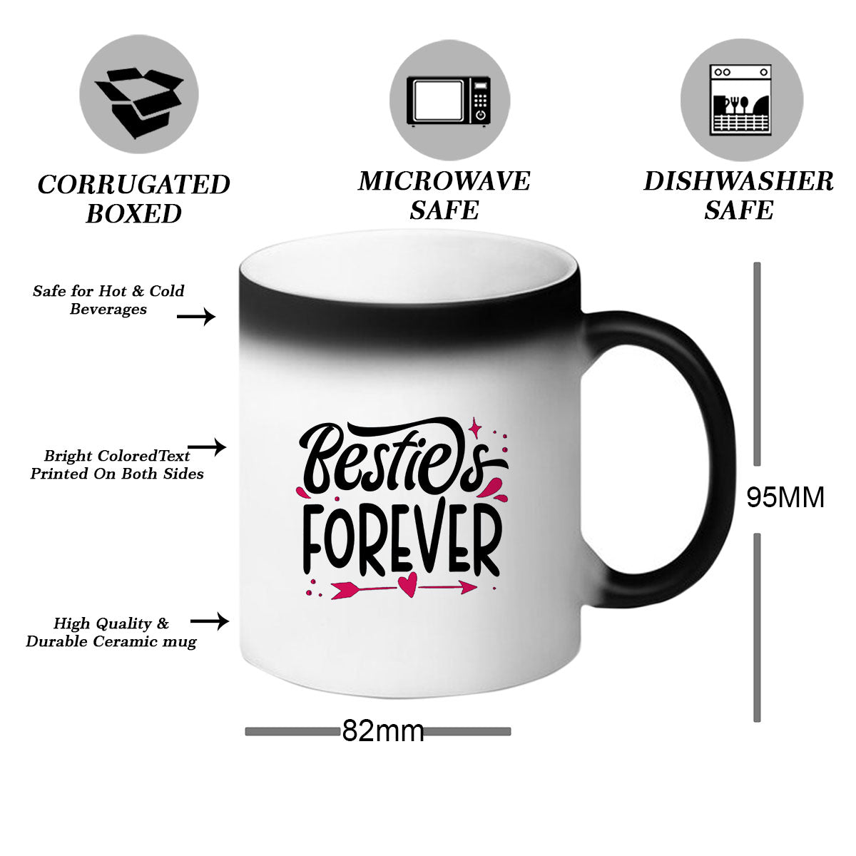 When your friend pours a hot beverage, such as coffee, tea, or hot chocolate, into the mug, an extraordinary transformation takes place. Like a magical spell, the black exterior of the mug starts to fade away, revealing a hidden design underneath. It could be a heartwarming message, a beautiful friendship quote, or even a personalized photo of you and your friend together.