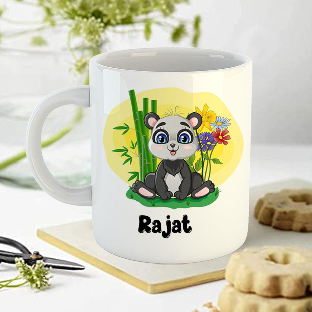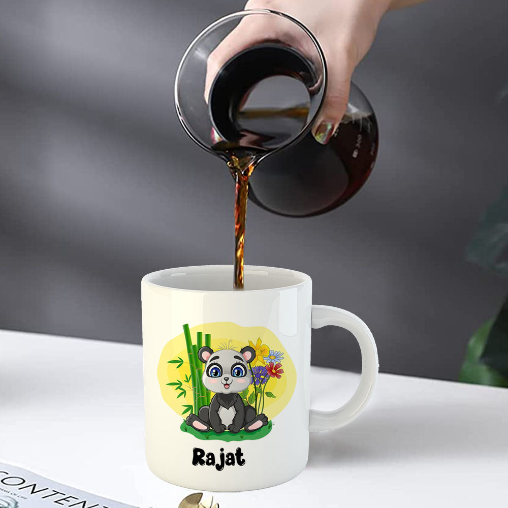 Chillaao Personalised Cute Panda With Bamboo White Mug