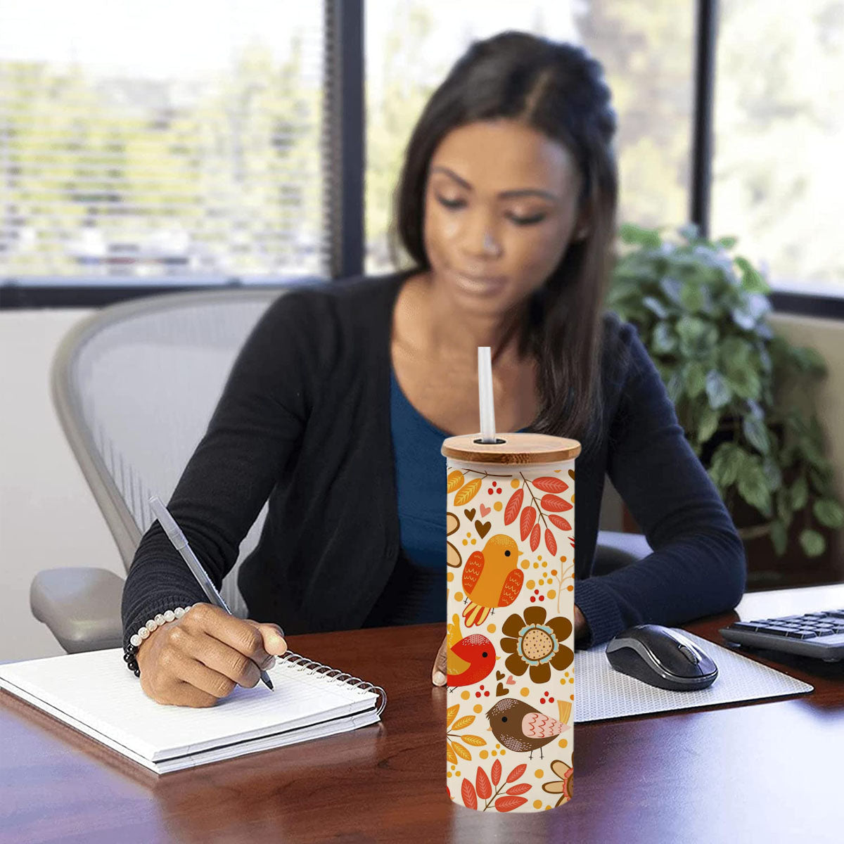 Chillaao Bird Pattern Frosted Skinny Tumbler