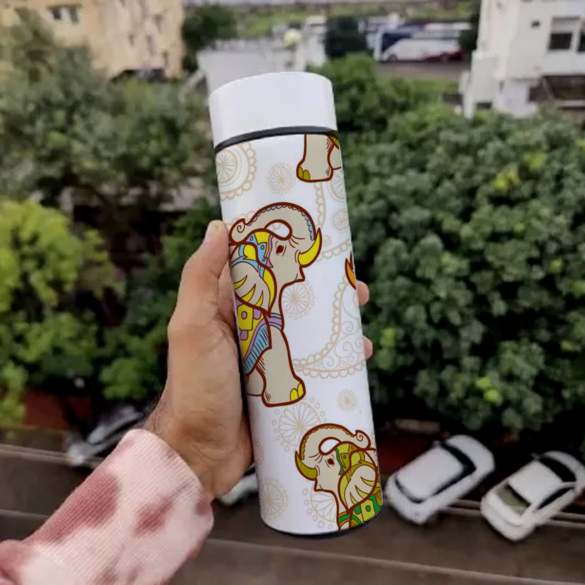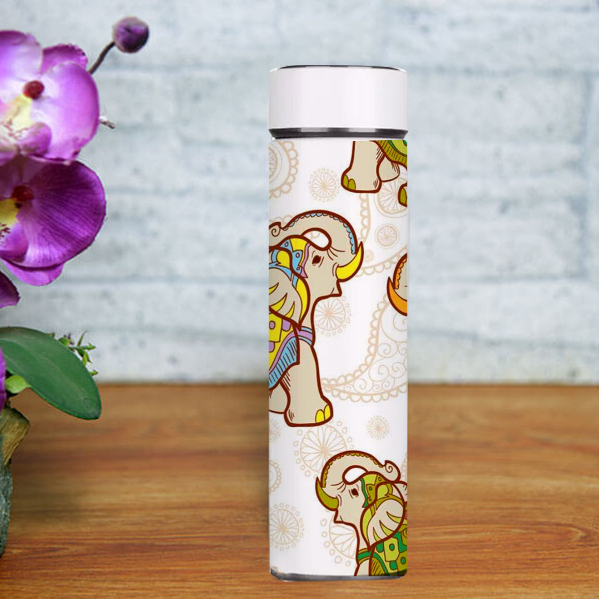 Chillaao Blue Beautiful Yellow Elephant Mandala Pattern Temperature Bottle White