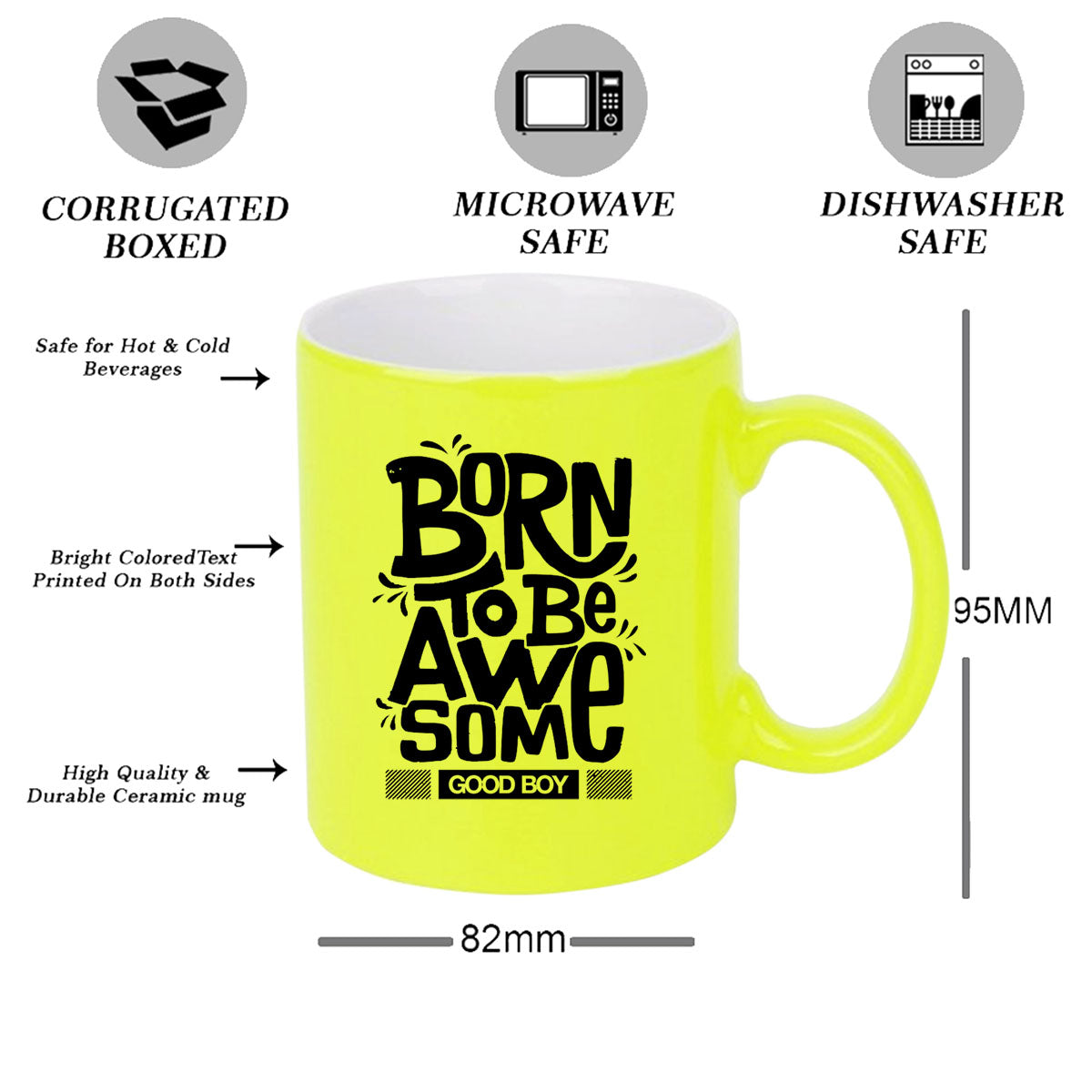 “Isn't it amazing how the world begins to change through the eyes of a cup of coffee”, why not to change it with a better start. Chill-aao.com let you shift from the regular coffee mugs to the newly introduced collection of Neon color mugs. The bright radiant colors are an absolute eye-catcher. The unique, quirky and funny prints guarantee to bring smile to your loved ones. Gift it to your friends, mom, dad, brother, sister, grandfather, grandmother, colleagues, cousins, girlfriend, boyfriend. Caters to all the important occasions of your life like birthdays, anniversaries, special days like friendship day, mother’s day, father’s day, valentine’s day, also can be gifted as a return gift. The mugs are made of white hard ceramic and are designed using the sublimation technology with the finest quality ecofriendly inks. The prints are scratch resistant and do not fade or come out with time and use. The size of the mug is perfect to accommodate a perfect amount of tea/coffee to start your day with. The product is printed against your order. The actual print may vary.