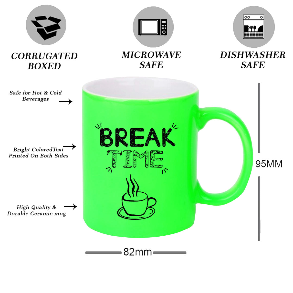 “Isn't it amazing how the world begins to change through the eyes of a cup of coffee”, why not to change it with a better start. Chill-aao.com let you shift from the regular coffee mugs to the newly introduced collection of Neon color mugs. The bright radiant colors are an absolute eye-catcher. The unique, quirky and funny prints guarantee to bring smile to your loved ones. Gift it to your friends, mom, dad, brother, sister, grandfather, grandmother, colleagues, cousins, girlfriend, boyfriend. Caters to all the important occasions of your life like birthdays, anniversaries, special days like friendship day, mother’s day, father’s day, valentine’s day, also can be gifted as a return gift. The mugs are made of white hard ceramic and are designed using the sublimation technology with the finest quality ecofriendly inks. The prints are scratch resistant and do not fade or come out with time and use. The size of the mug is perfect to accommodate a perfect amount of tea/coffee to start your day with. The product is printed against your order. The actual print may vary.