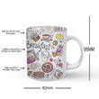 The size of the mug is perfect to accommodate a perfect amount of tea/coffee to start your day with. The product is printed against your order. The actual print may vary a bit.