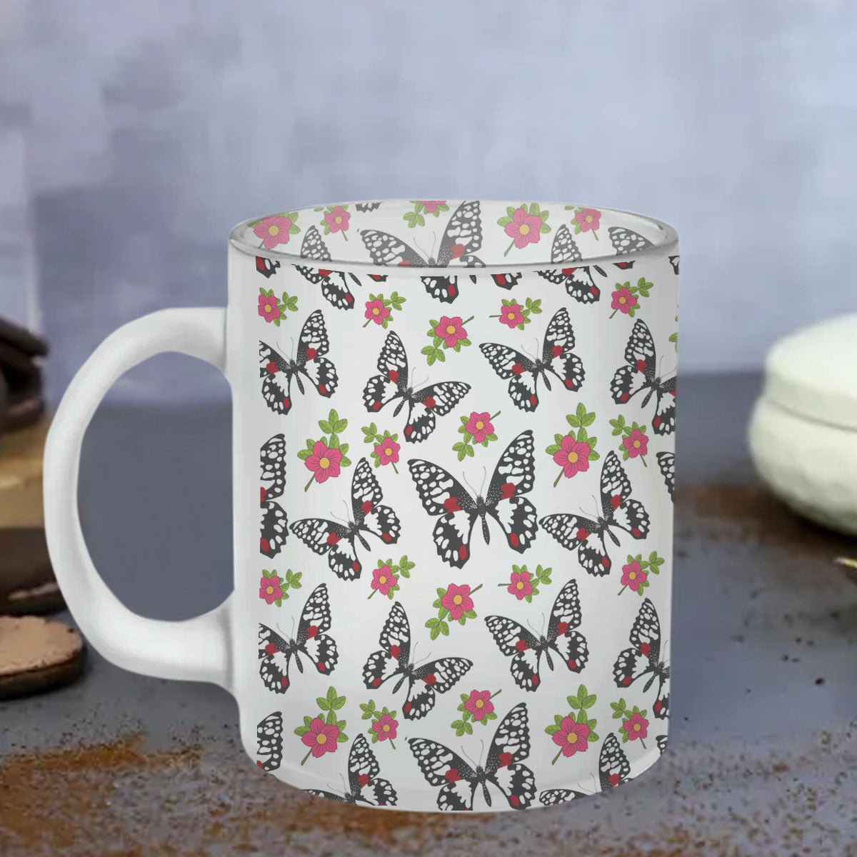 Chillaao Butterfly Pattern Glass Mug