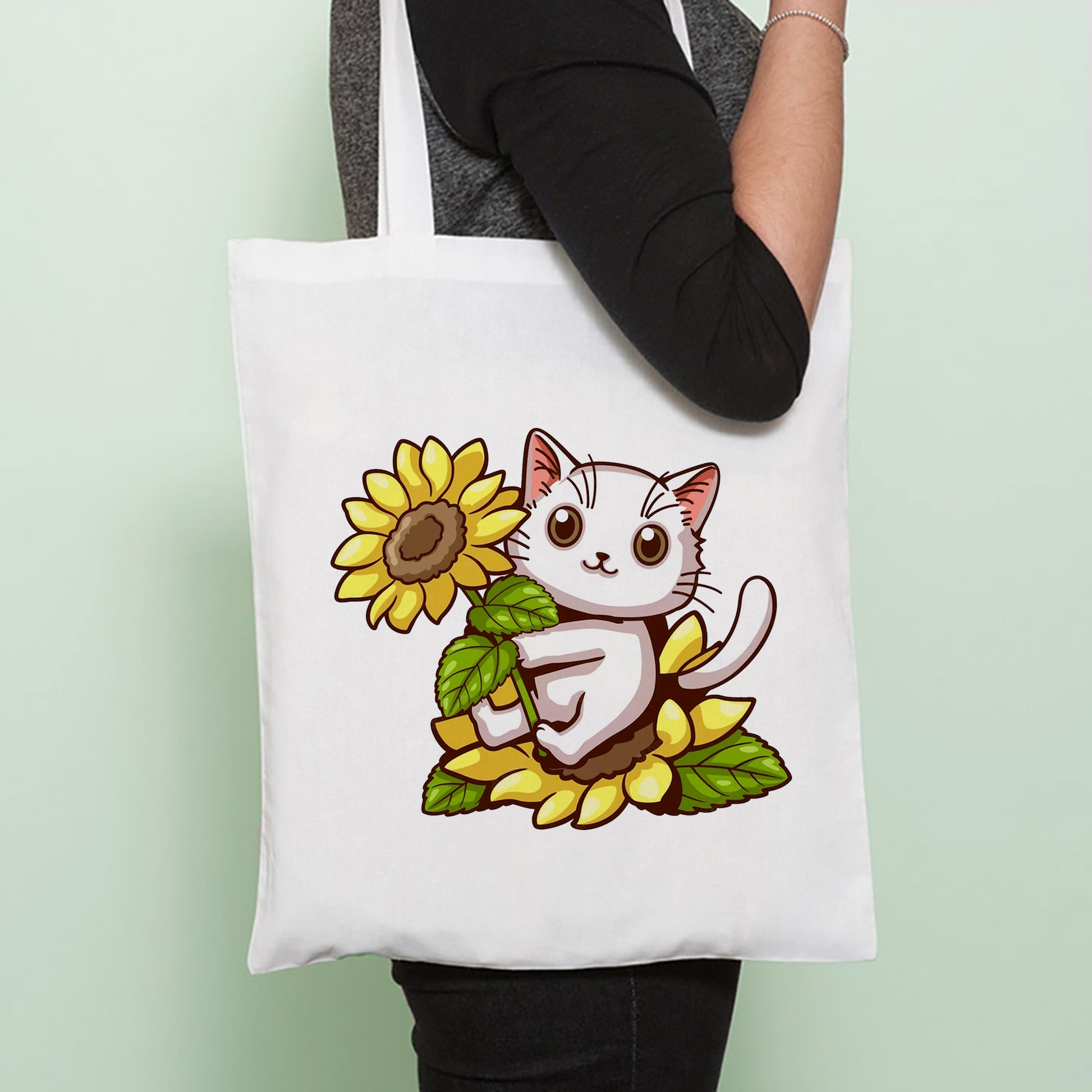 Chillaao cat on sunflower tote bag