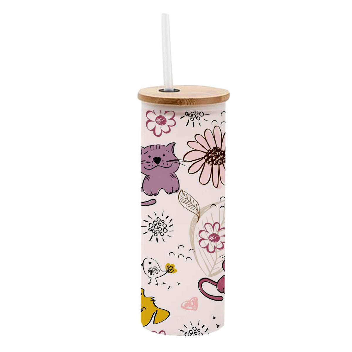 Chillaao Cat With Flower Pattern Frosted Skinny Tumbler
