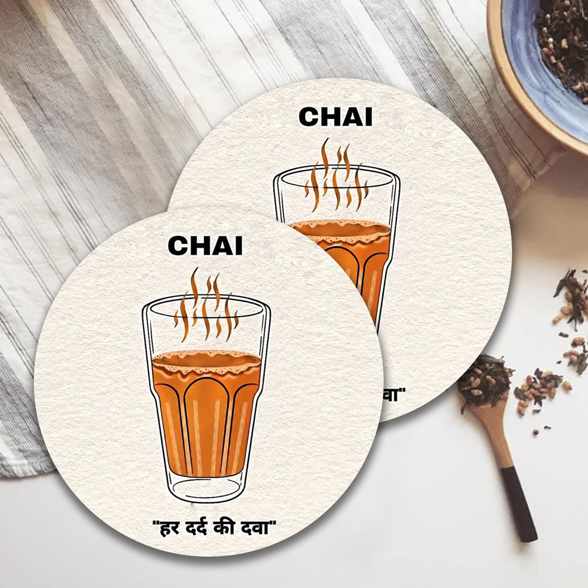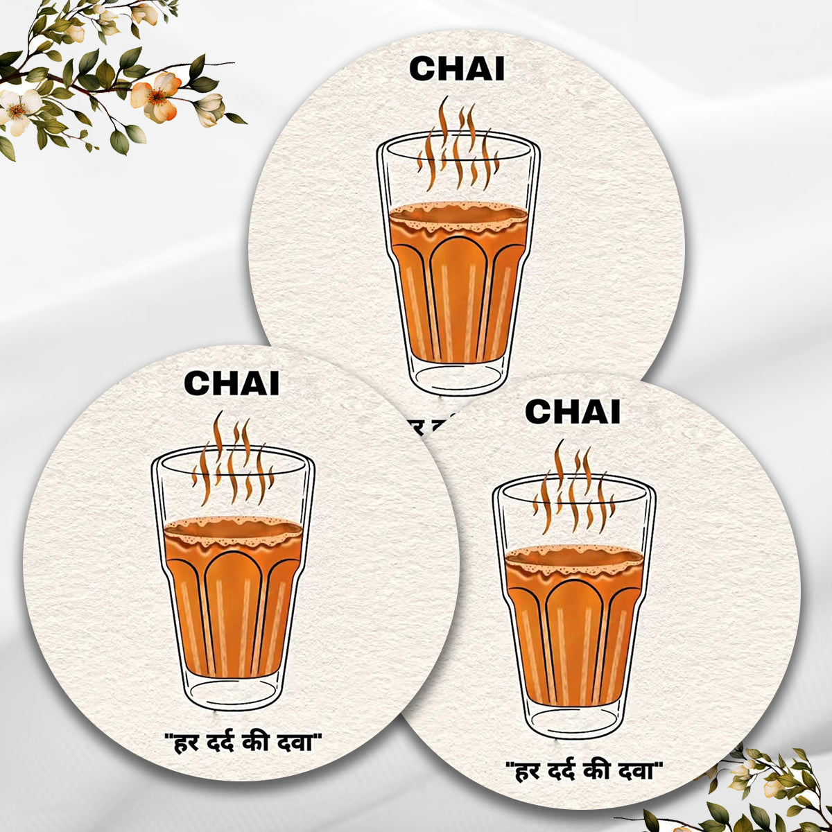 Chillaao Chai Har Dard Ki Dawa Round Coaster ( Set Of 4)