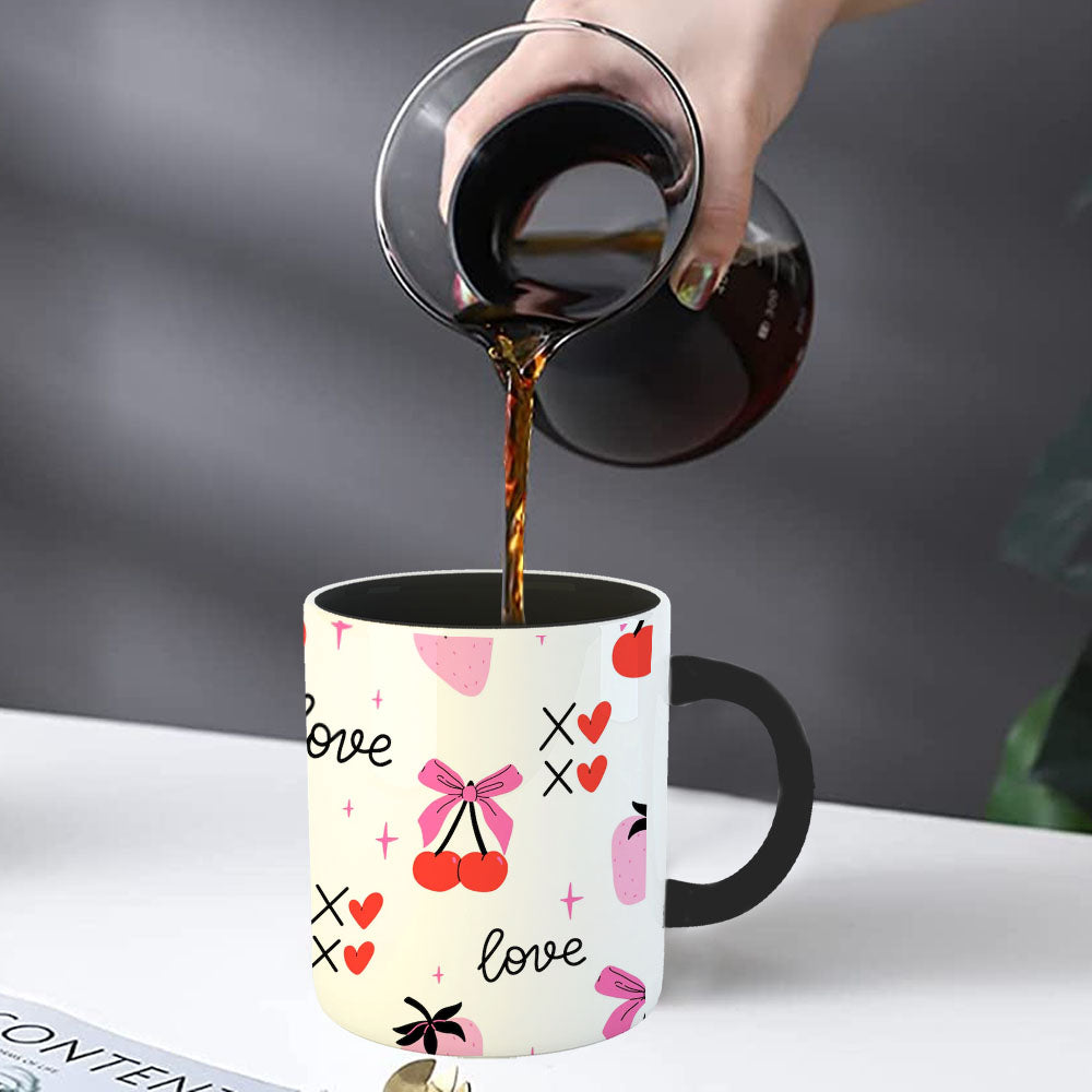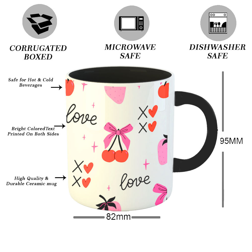 Chillaao Cherries and coquette bows on pink pattern Inner Color Black Mug
