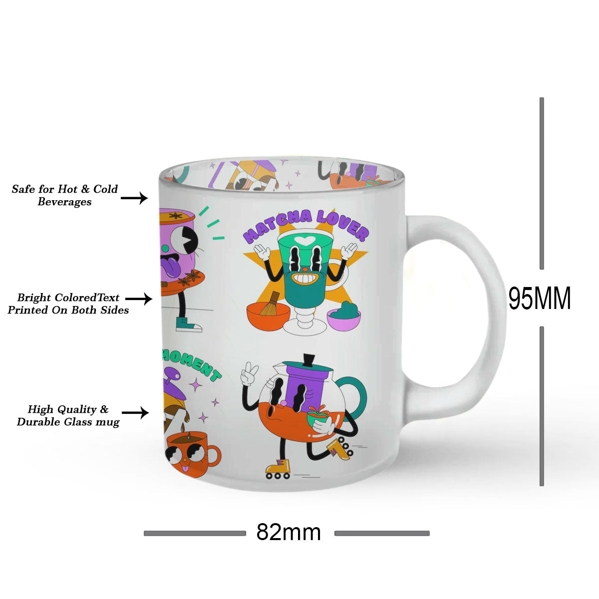 The size of the mug is perfect to accommodate a perfect amount of tea/coffee to start your day with. The product is printed against your order. The actual print may vary a bit.