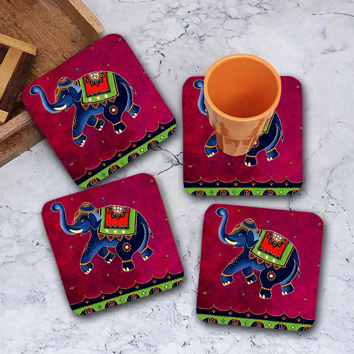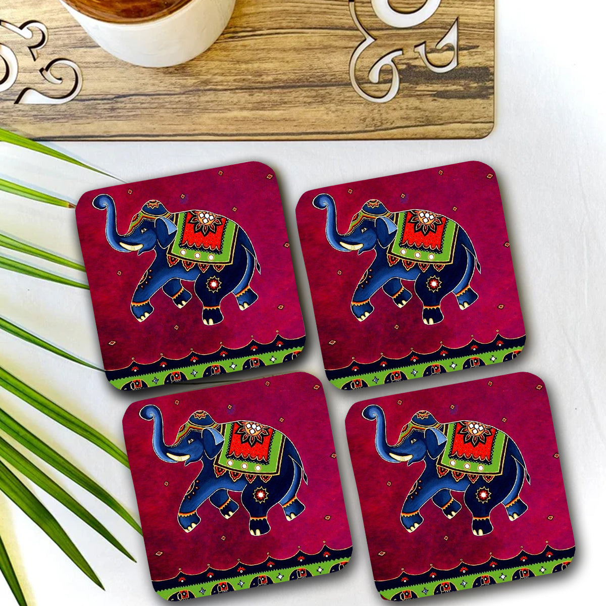 Chillaao Colorful Elephant Portrait Square Coaster ( Set Of 4 )