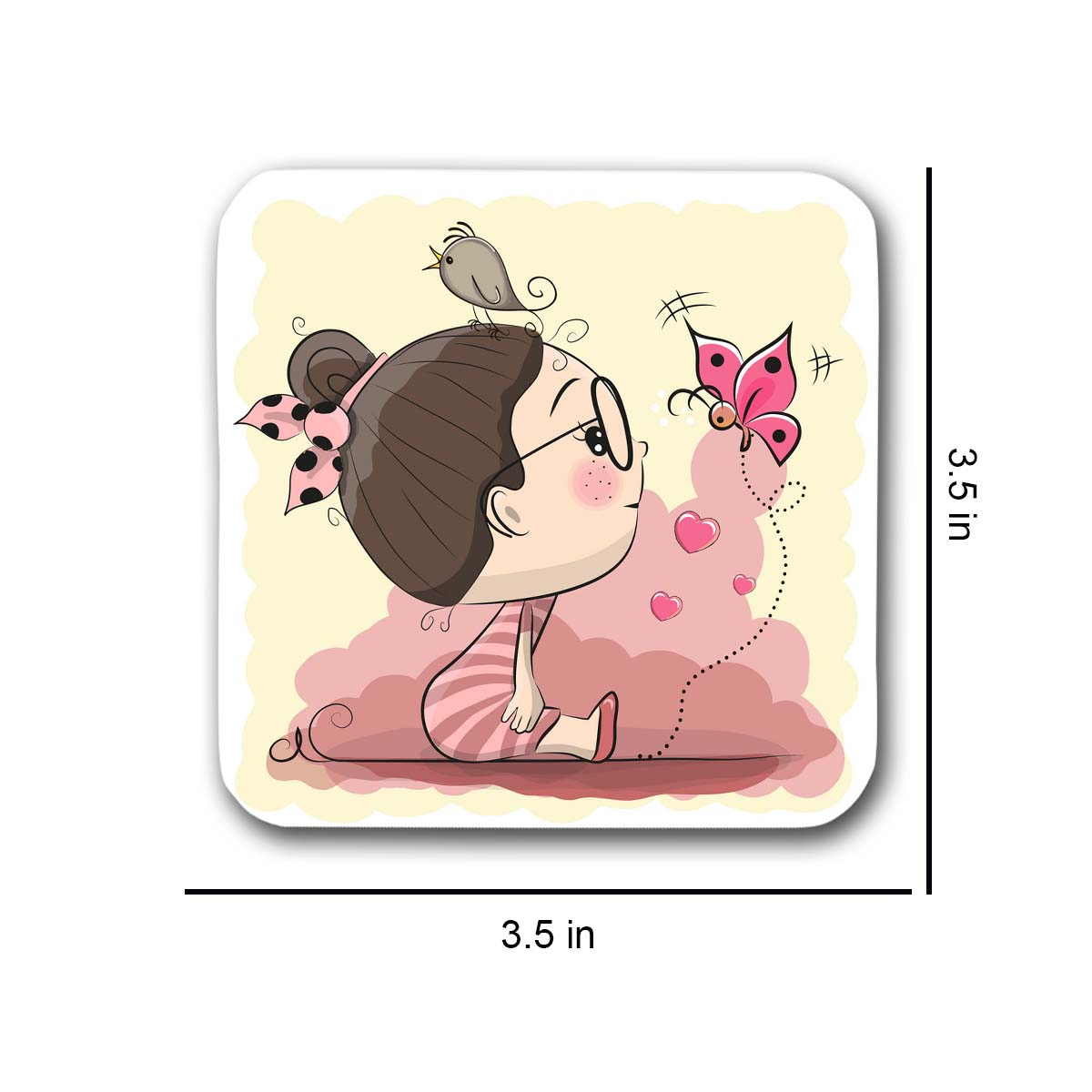 Chillaao Cute Cartoon Girl With Bird and Butterfly Vector Coaster