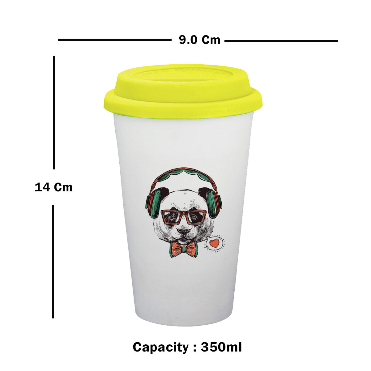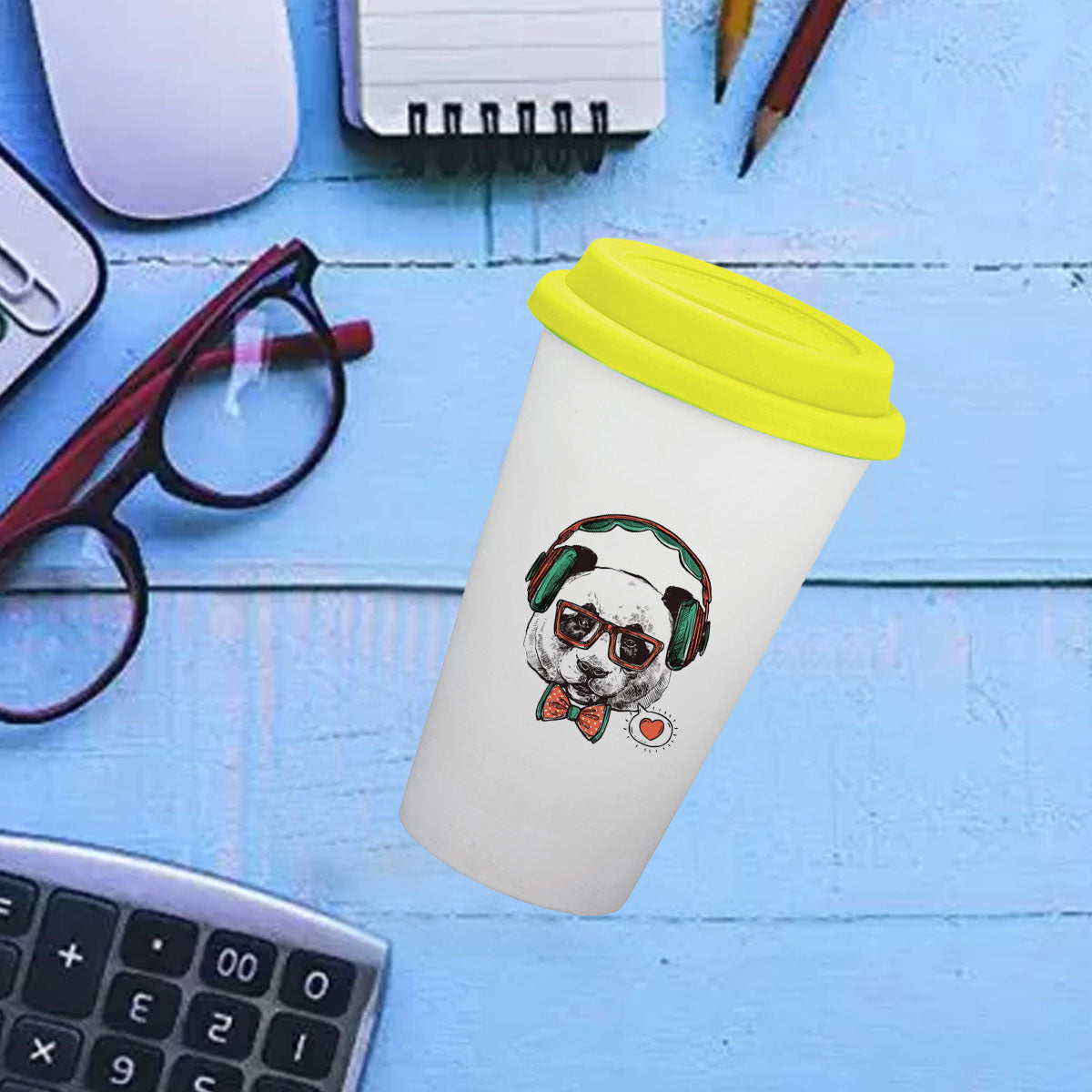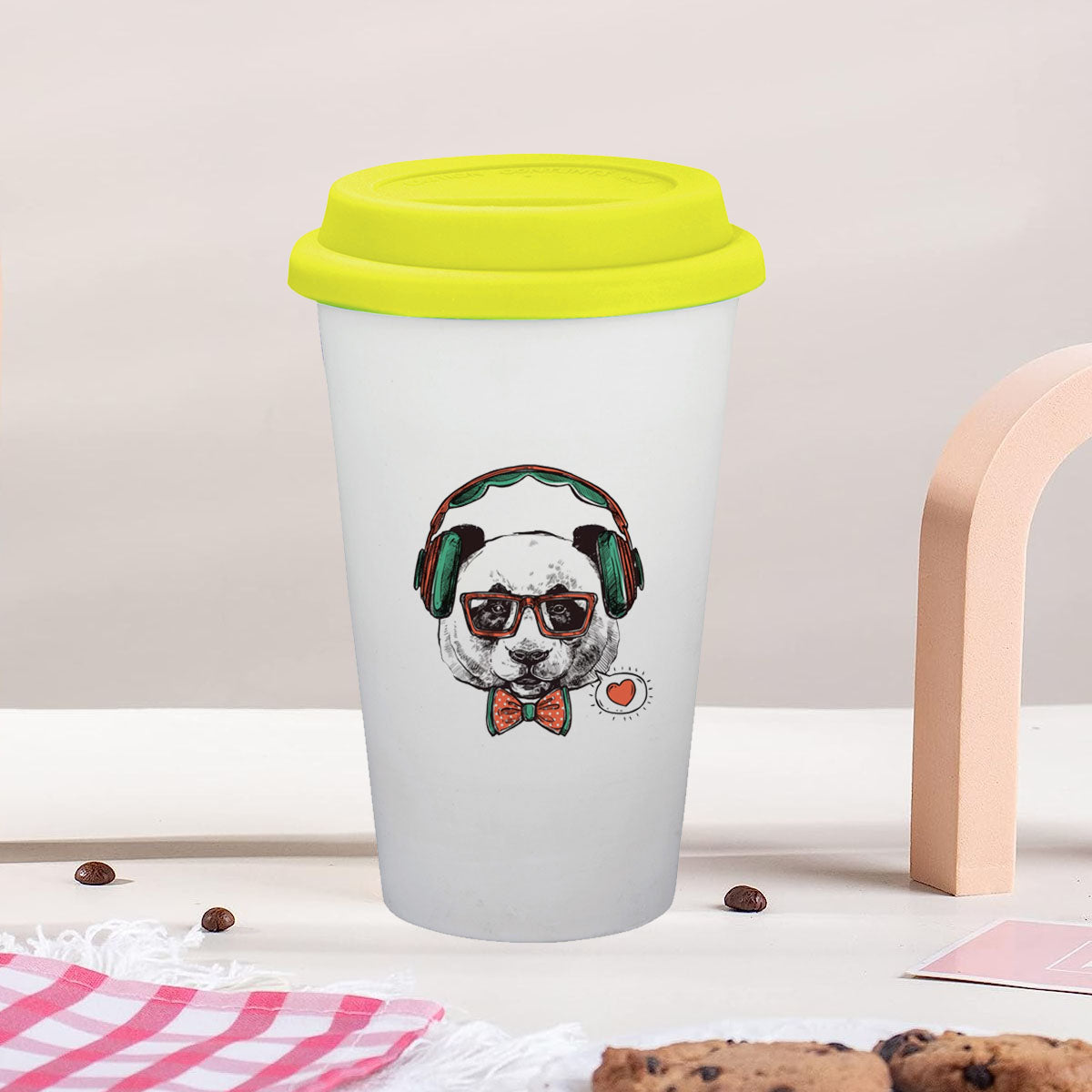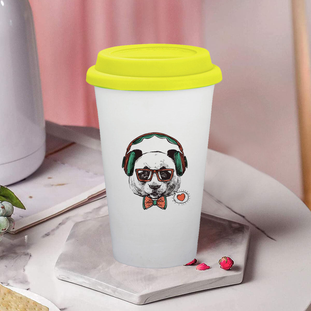 Chillaao Dog Headphone Ceramic Tumbler Yellow Lid