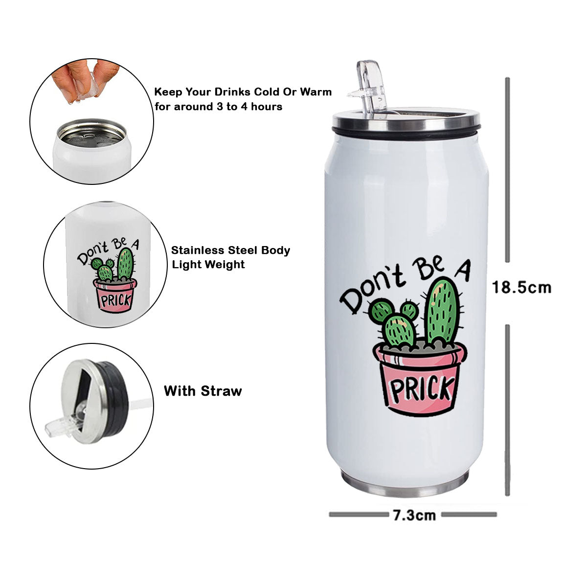 Tired of drinking in the same regular designed bottles? Try our uniquely designed can-shaped bottle. Once you do, you won’t want do without it. Double walled construction provides insulation to all your hot and cold liquids. Carry it anywhere whether it’s the beach, mountains, boat, night out, office party, camping, bar, bachelorette party, it is surely to be a huge hit. They also make the best gift or the party favors. The straw lid adds to the convenience for drinking. The unique, quirky and funny prints guarantee to bring smile to your loved ones. Gift it to your friends, mom, dad, brother, sister, colleagues, cousins, boyfriend, girlfriend. 100% stainless steel yet light weight. Eco-friendly and are designed using the sublimation technology with the finest quality inks. The prints are scratch resistant and do not fade or come out with time and use. The product is printed against your order. The actual print may vary a bit.