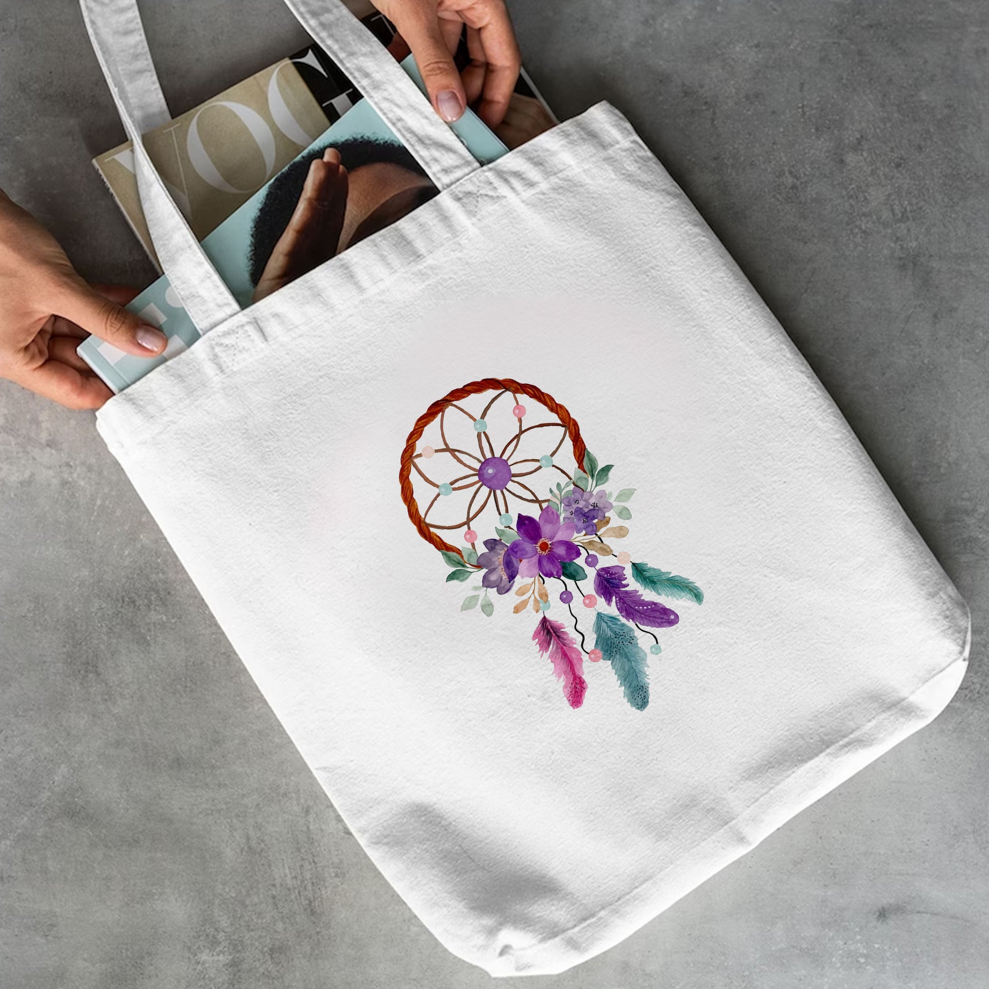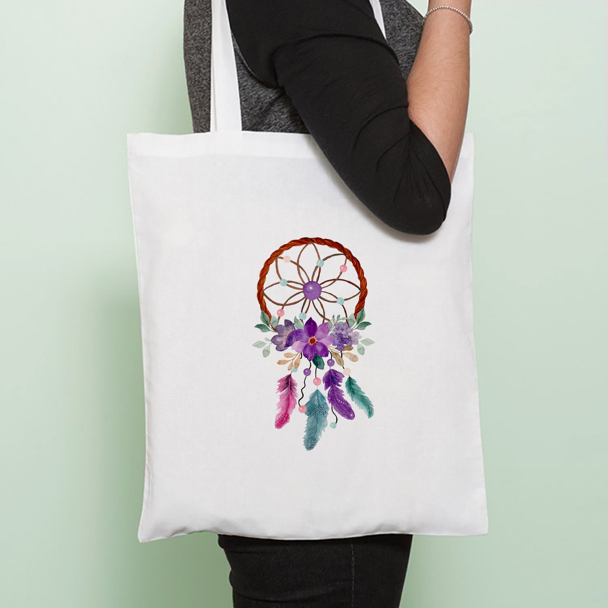 Chillaao dreamcatcher with purple flower tote bag