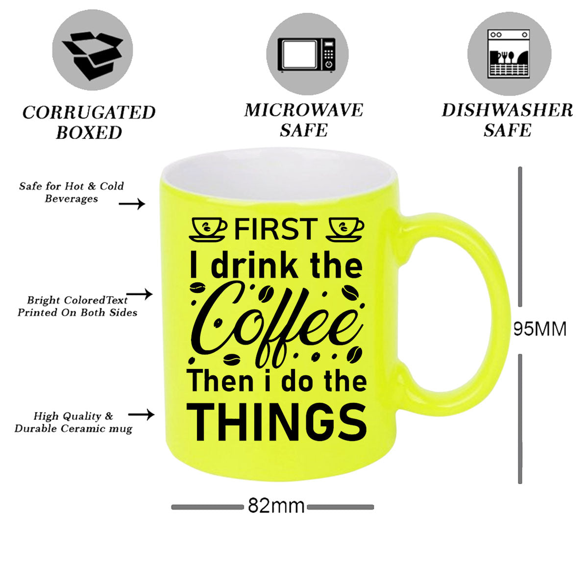 Chillaao First I drink the coffee neon Yellow mug
