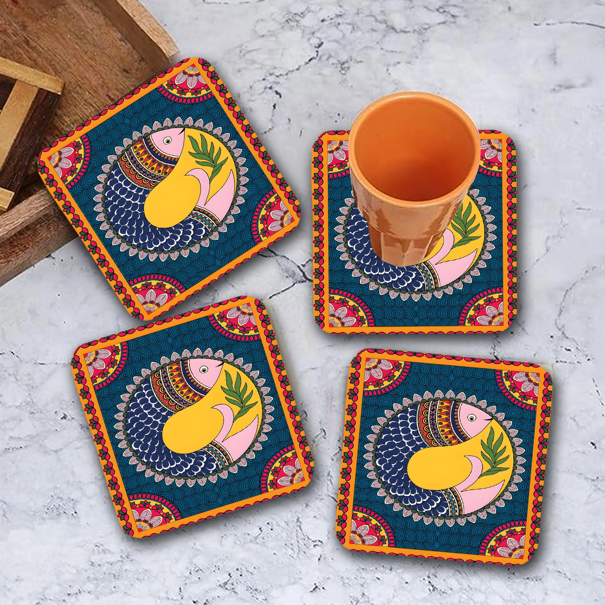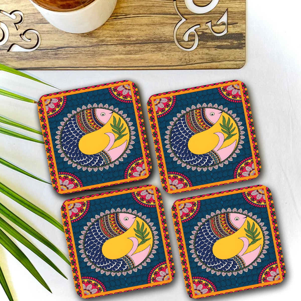 Chillaao Fish Textured Mandala Square Coaster ( Set Of 4 )