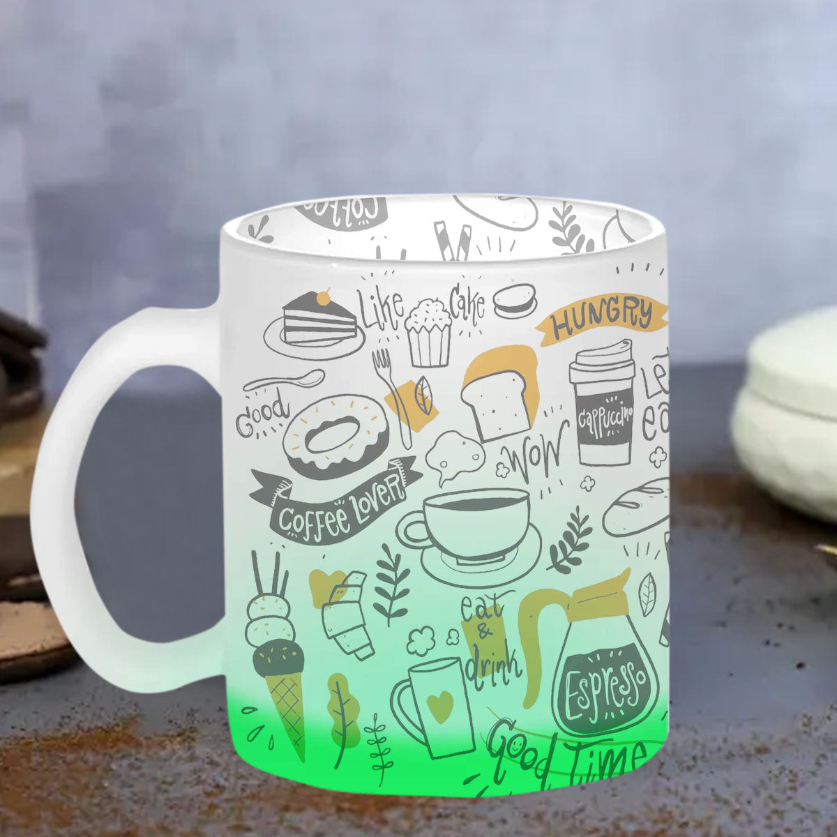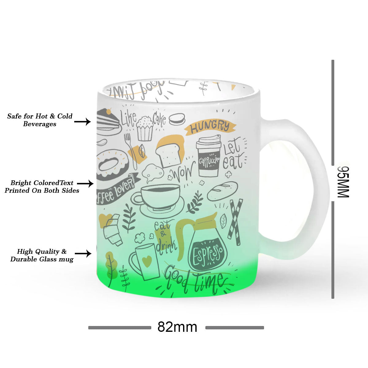 Chillaao Food Doodle Green Glass Mug