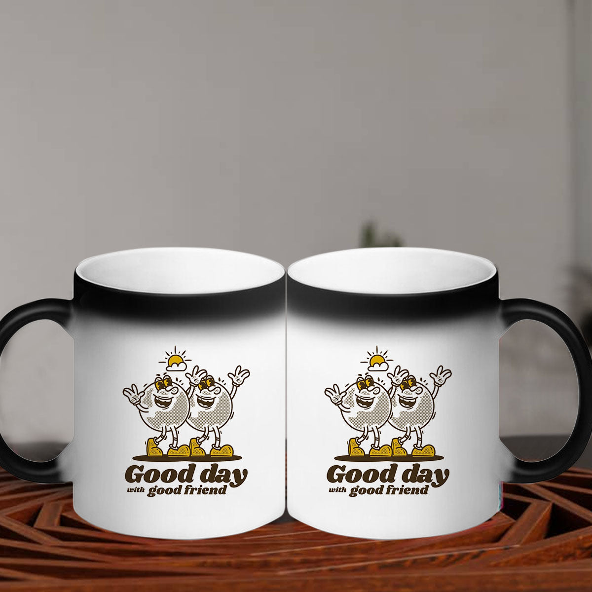 When your friend pours a hot beverage, such as coffee, tea, or hot chocolate, into the mug, an extraordinary transformation takes place. Like a magical spell, the black exterior of the mug starts to fade away, revealing a hidden design underneath. It could be a heartwarming message, a beautiful friendship quote, or even a personalized photo of you and your friend together.