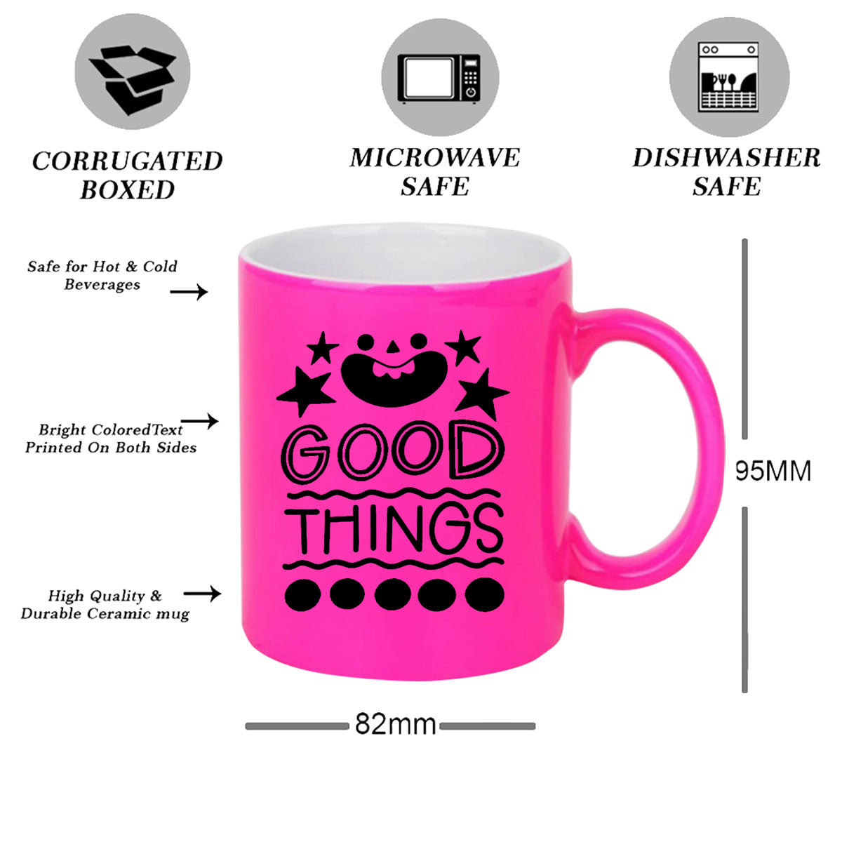 “Isn't it amazing how the world begins to change through the eyes of a cup of coffee”, why not to change it with a better start. Chill-aao.com let you shift from the regular coffee mugs to the newly introduced collection of Neon color mugs. The bright radiant colors are an absolute eye-catcher. The unique, quirky and funny prints guarantee to bring smile to your loved ones. Gift it to your friends, mom, dad, brother, sister, grandfather, grandmother, colleagues, cousins, girlfriend, boyfriend. Caters to all the important occasions of your life like birthdays, anniversaries, special days like friendship day, mother’s day, father’s day, valentine’s day, also can be gifted as a return gift. The mugs are made of white hard ceramic and are designed using the sublimation technology with the finest quality ecofriendly inks. The prints are scratch resistant and do not fade or come out with time and use. The size of the mug is perfect to accommodate a perfect amount of tea/coffee to start your day with. The product is printed against your order. The actual print may vary.