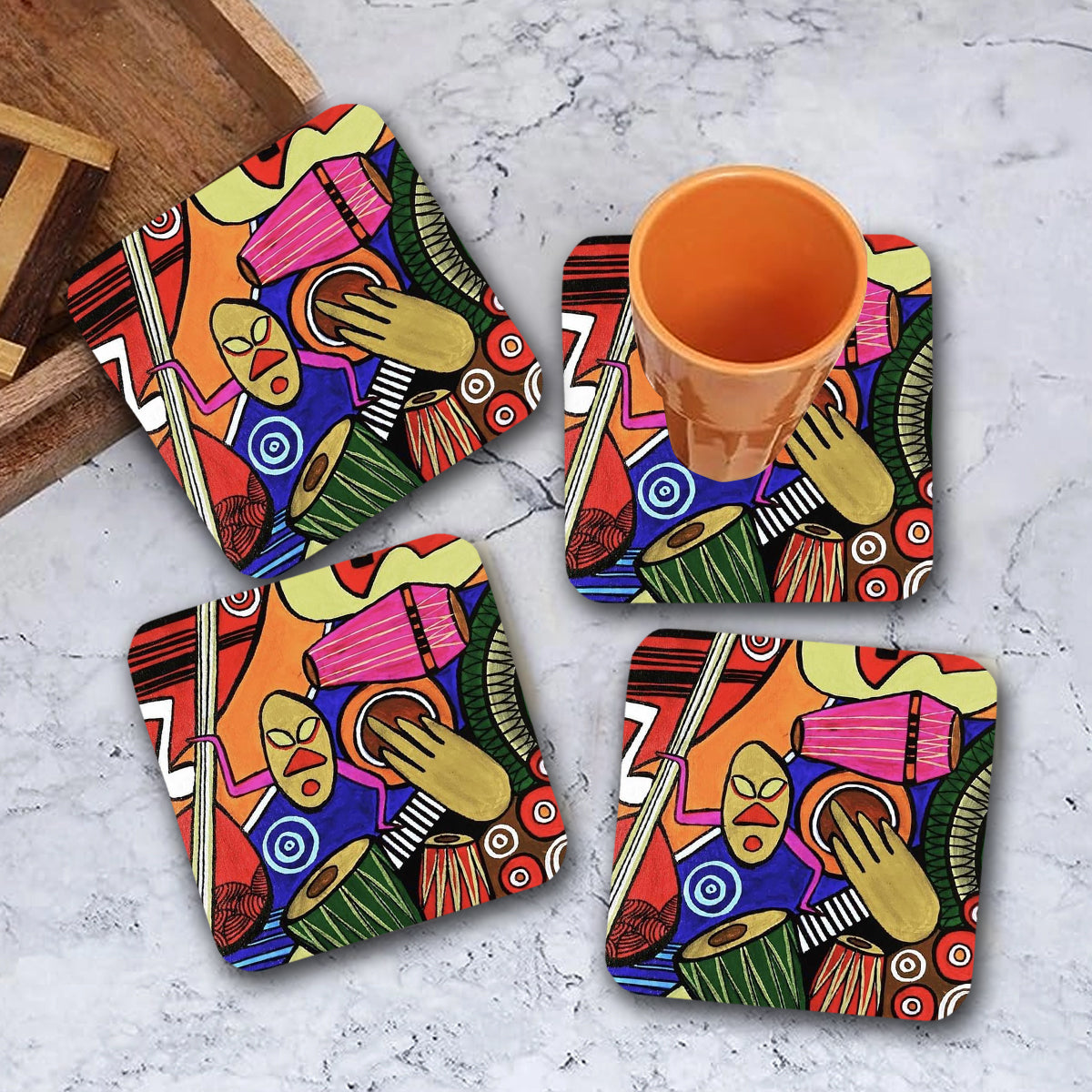 Chillaao Grand Rajasthan Painting Square Coaster ( Set Of 4 )