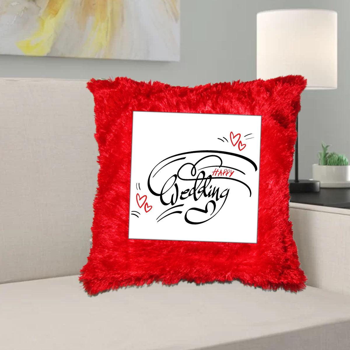 Surprise someone special with this Red Color Fur Pillow with a charming print, and they'll cherish it as a token of your love and thoughtfulness. Make every moment cozier and more memorable with this delightful gift!