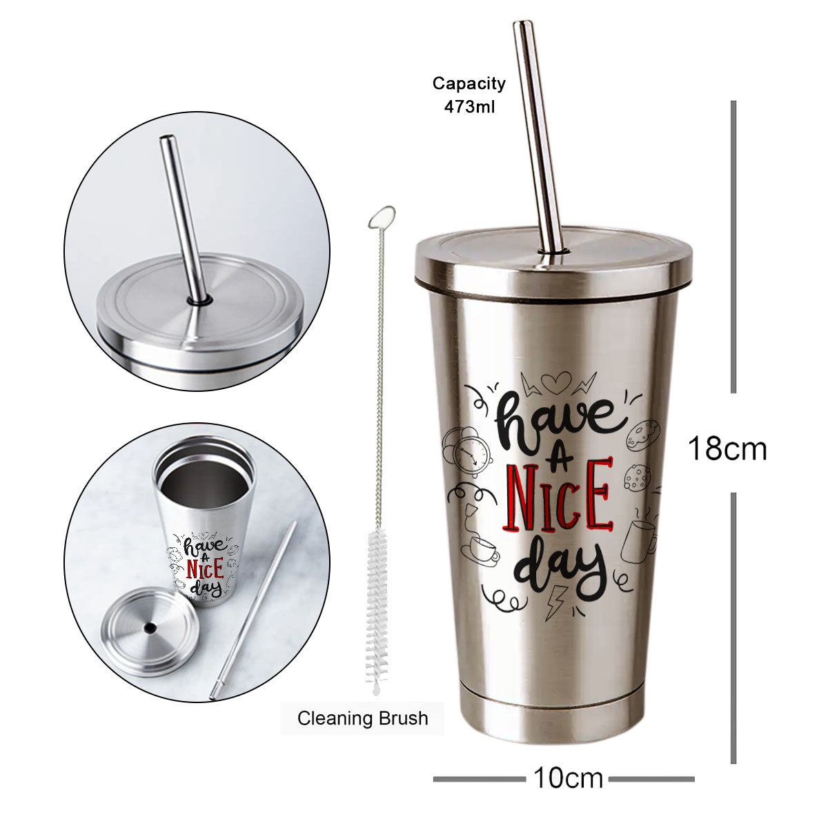 We at Chill-aao.com makes your life easy with our extremely stylish range of steel Steel Tumblers. Don’t have the time to sit and enjoy your favorite drink? Just carry it with you wherever you travel. Let’s make it a part of our modern lifestyle. Comes with a steel lid with straw hole and a steel straw to protect your drink from spilling and leaking. The unique, quirky and funny prints guarantee to bring smile to your loved ones. Gift it to your friends, mom, dad, brother, sister, colleagues, cousins, girlfriend, boyfriend. Caters to all the important occasions of your life like birthdays, anniversaries, special days like friendship day, mother’s day, father’s day, valentine’s day, also can be gifted as a return gift. The Steel Tumblers are made of good quality stainless steel and are designed using the sublimation technology with the finest quality ecofriendly inks. The prints are scratch resistant and do not fade or come out with time and use. The product is printed against your order. The actual print may vary a bit.