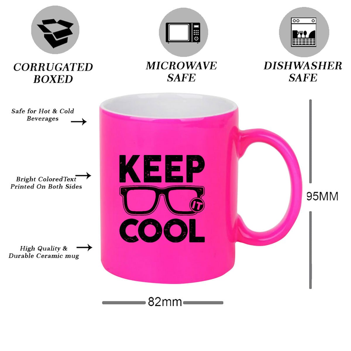 “Isn't it amazing how the world begins to change through the eyes of a cup of coffee”, why not to change it with a better start. Chill-aao.com let you shift from the regular coffee mugs to the newly introduced collection of Neon color mugs. The bright radiant colors are an absolute eye-catcher. The unique, quirky and funny prints guarantee to bring smile to your loved ones. Gift it to your friends, mom, dad, brother, sister, grandfather, grandmother, colleagues, cousins, girlfriend, boyfriend. Caters to all the important occasions of your life like birthdays, anniversaries, special days like friendship day, mother’s day, father’s day, valentine’s day, also can be gifted as a return gift. The mugs are made of white hard ceramic and are designed using the sublimation technology with the finest quality ecofriendly inks. The prints are scratch resistant and do not fade or come out with time and use. The size of the mug is perfect to accommodate a perfect amount of tea/coffee to start your day with. The product is printed against your order. The actual print may vary.