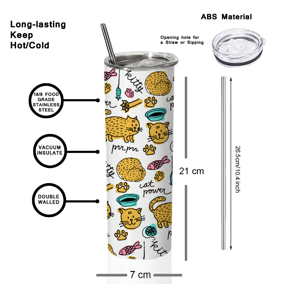 Unleash your style with our newly introduced Skinny tumbler. The sleek slim shape makes the bottle a star in itself. Double walled construction provides insulation to all your hot and cold liquids. The push on lid is attached by a rubber gasket making it both secure and easy to put on. Also allows you to sip directly or use the included steel straw accompanied by a straw cleaner. This tumbler is extremely versatile for any occasions and fits your interest. Use it to travel, to outdoor events and sports activities, personalize them for party favors and gifts, or just for everyday use. The unique, quirky and funny prints guarantee to bring smile to your loved ones. Gift it to your friends, mom, dad, brother, sister, colleagues, cousins, boyfriend, girlfriend. 100% stainless steel yet light weight. Eco-friendly and are designed using the sublimation technology with the finest quality inks. The prints are scratch resistant and do not fade or come out with time and use. The product is printed against your order. The actual print may vary a bit.