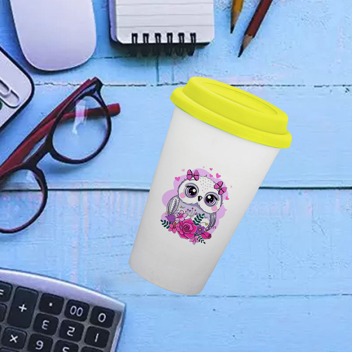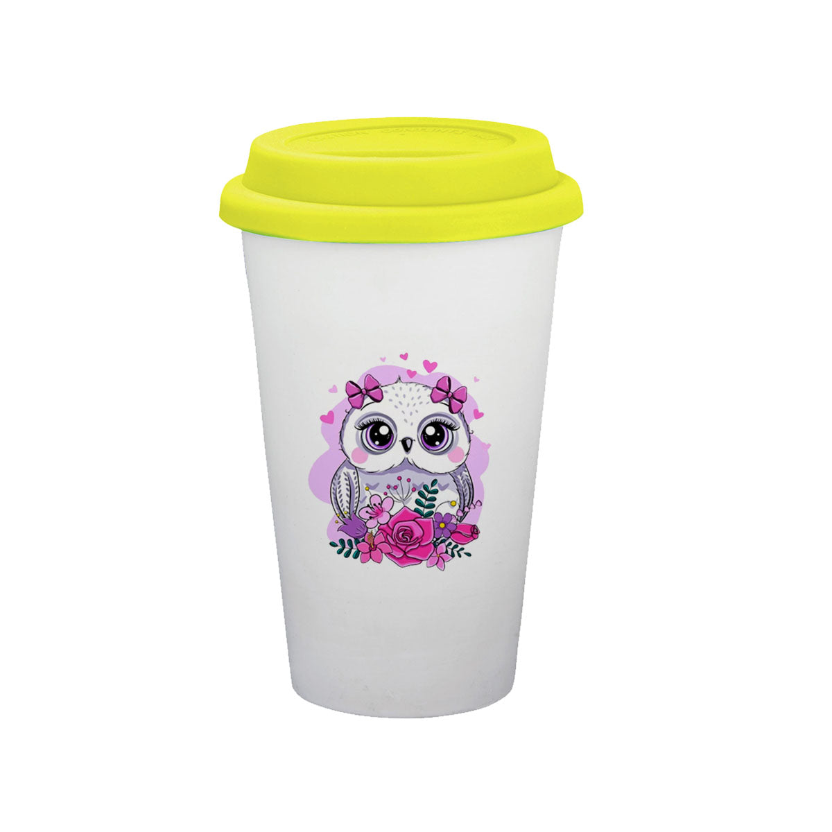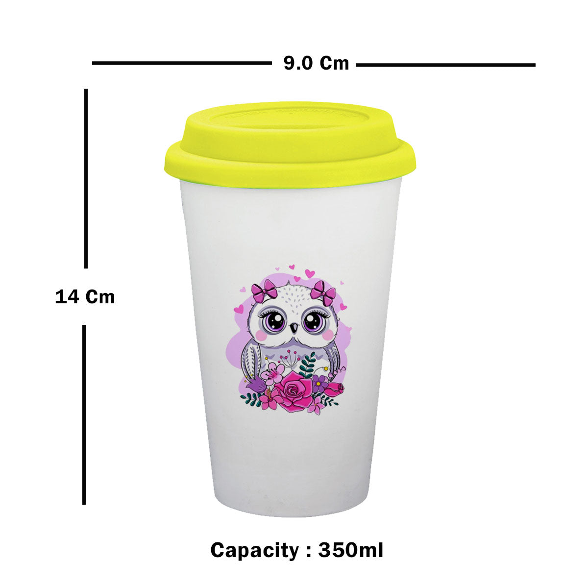 Chillaao Little cute owl and flowers Tumbler Yellow Lid