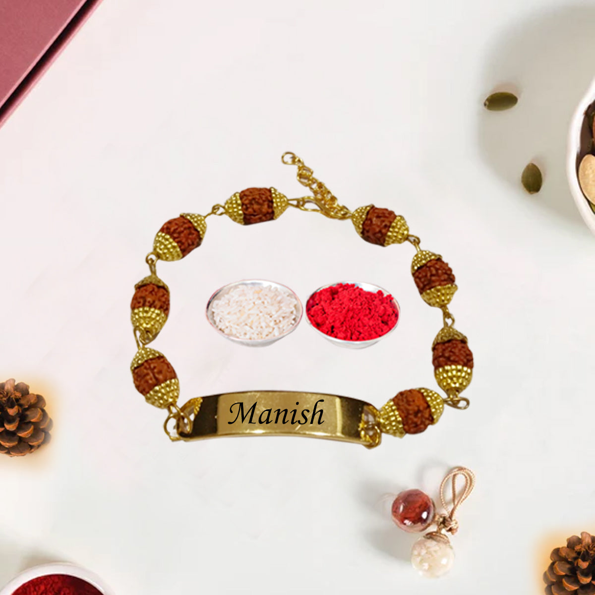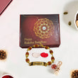 - Rudraksha Rakhi: The centerpiece of the hamper is usually a beautiful Rakhi, which is a decorative thread that symbolizes the bond of love between siblings. Rakhis come in various designs, materials, and styles, catering to different preferences.