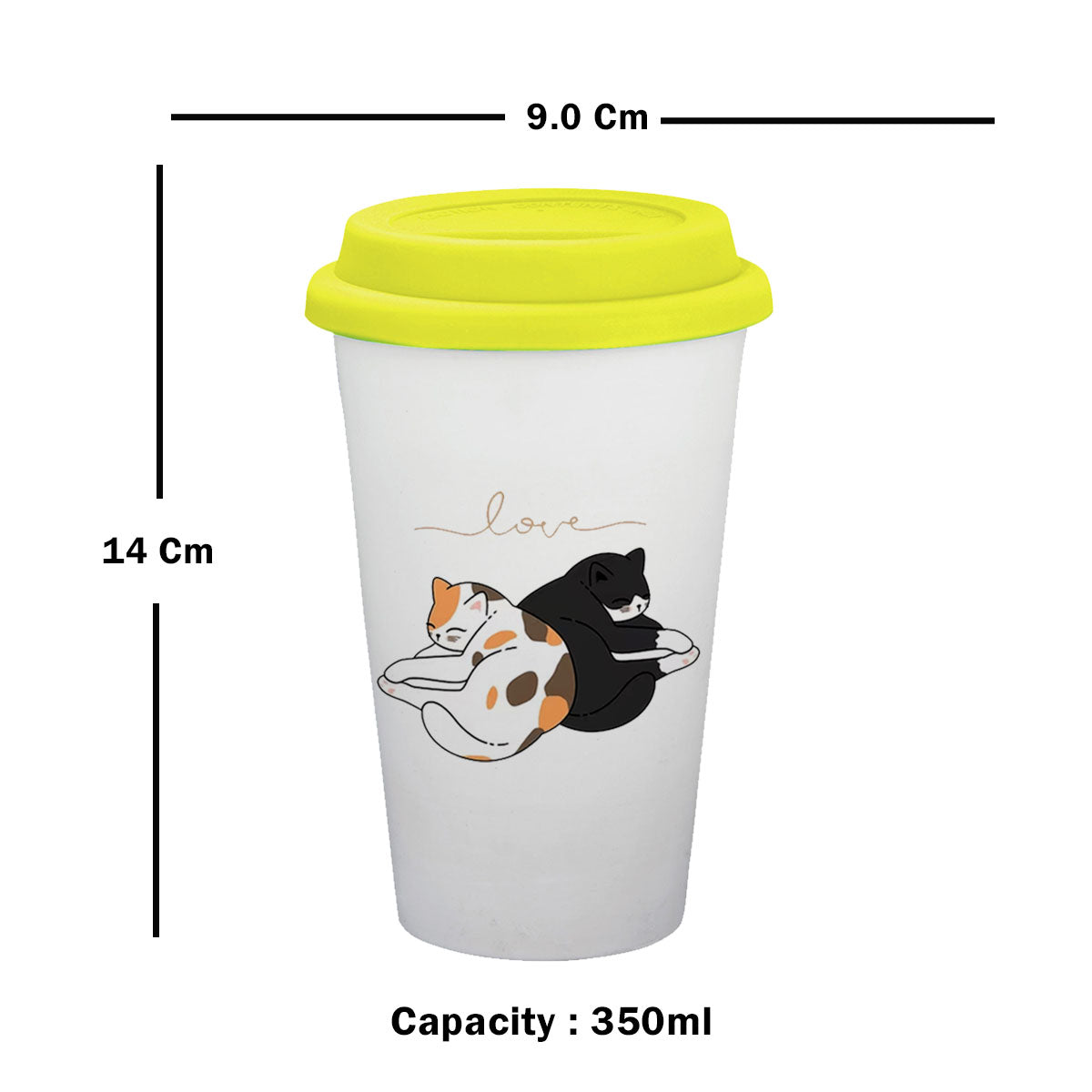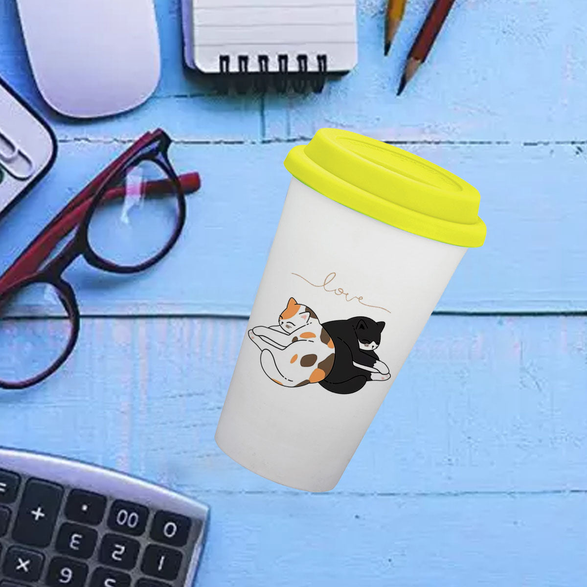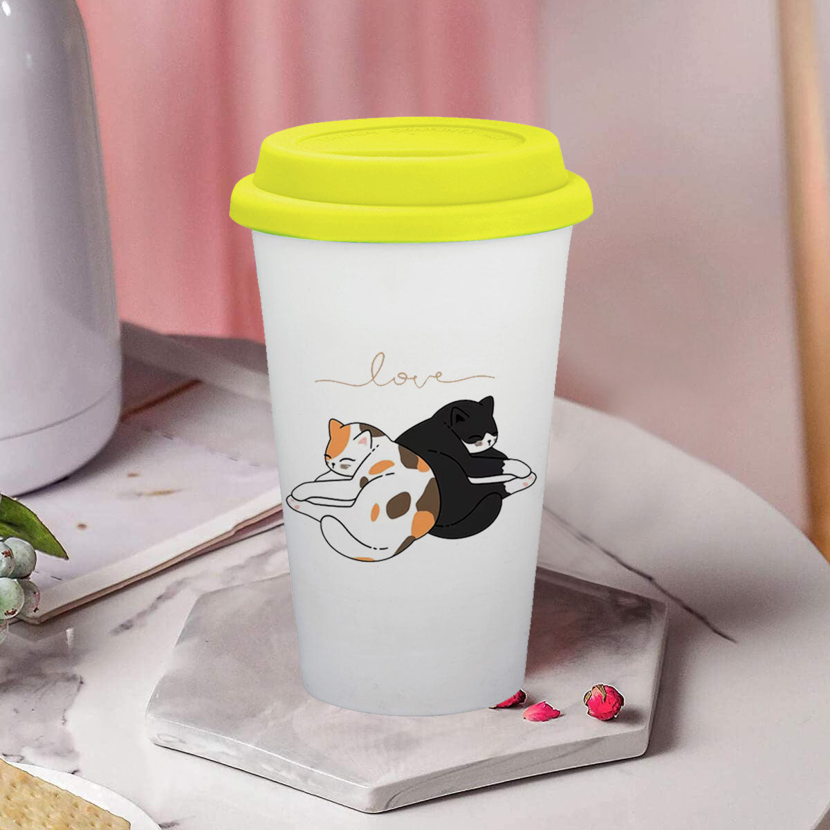 Chillaao Love Cat Ceramic Tumbler Yellow Lid