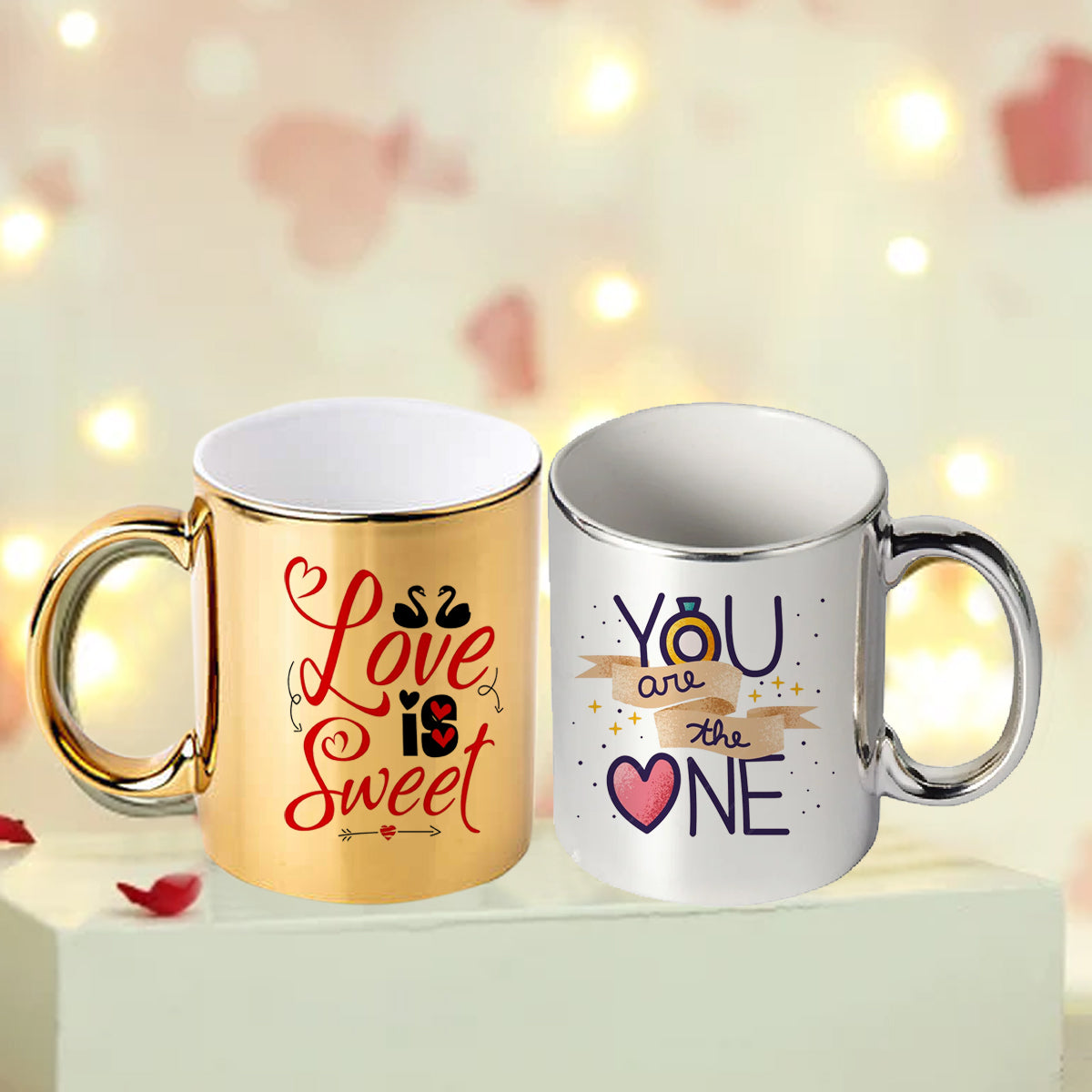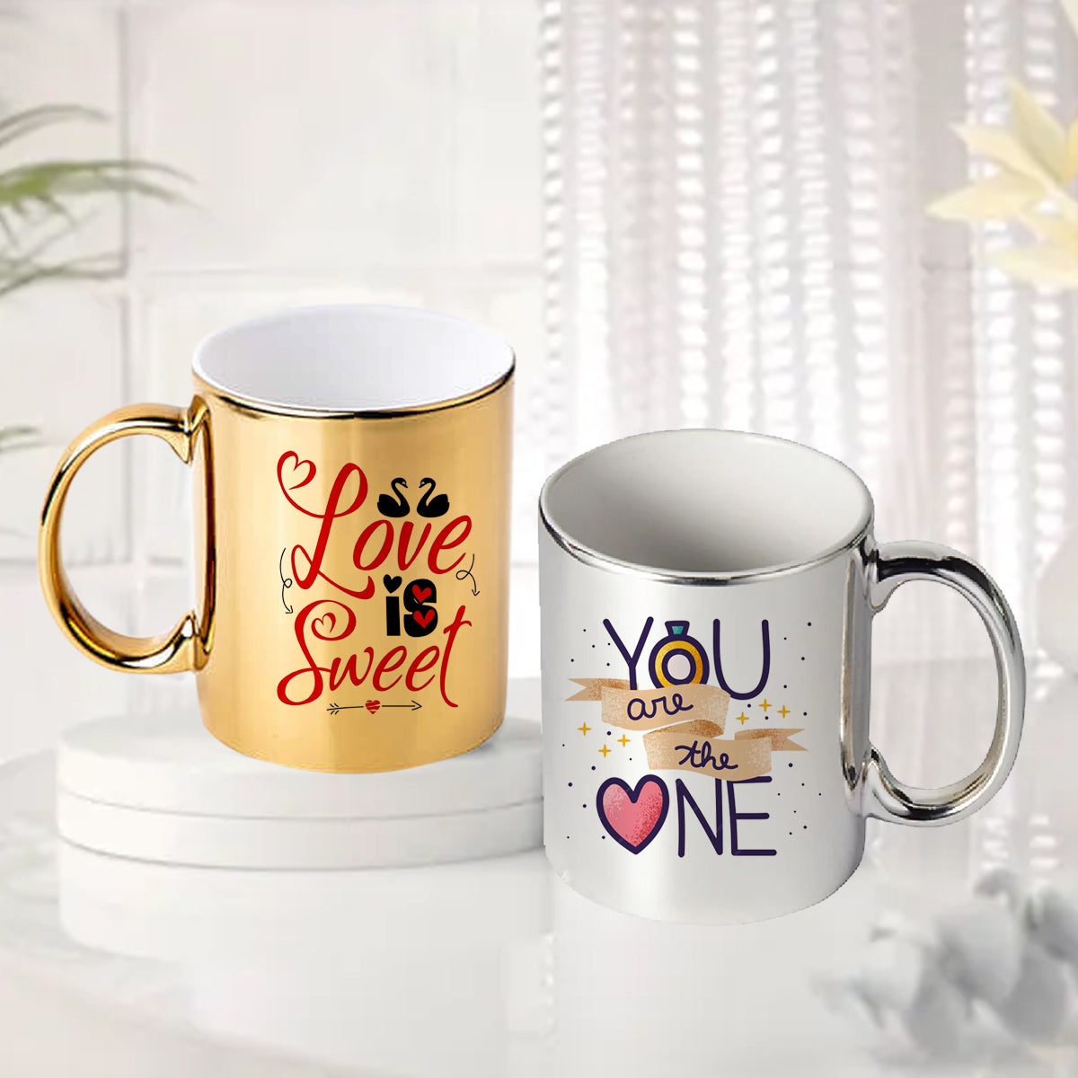 Chillaao Love is Sweet & You are One Golden & Silver Plated Combo Mug