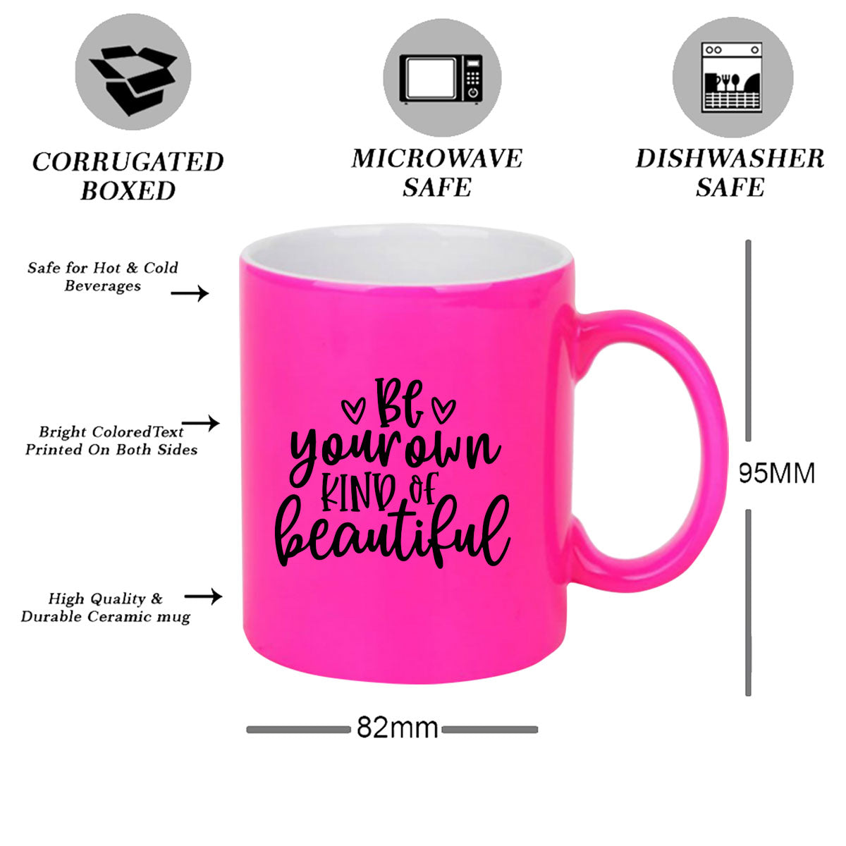 “Isn't it amazing how the world begins to change through the eyes of a cup of coffee”, why not to change it with a better start. Chill-aao.com let you shift from the regular coffee mugs to the newly introduced collection of Neon color mugs. The bright radiant colors are an absolute eye-catcher. The unique, quirky and funny prints guarantee to bring smile to your loved ones. Gift it to your friends, mom, dad, brother, sister, grandfather, grandmother, colleagues, cousins, girlfriend, boyfriend. Caters to all the important occasions of your life like birthdays, anniversaries, special days like friendship day, mother’s day, father’s day, valentine’s day, also can be gifted as a return gift. The mugs are made of white hard ceramic and are designed using the sublimation technology with the finest quality ecofriendly inks. The prints are scratch resistant and do not fade or come out with time and use. The size of the mug is perfect to accommodate a perfect amount of tea/coffee to start your day with. The product is printed against your order. The actual print may vary.