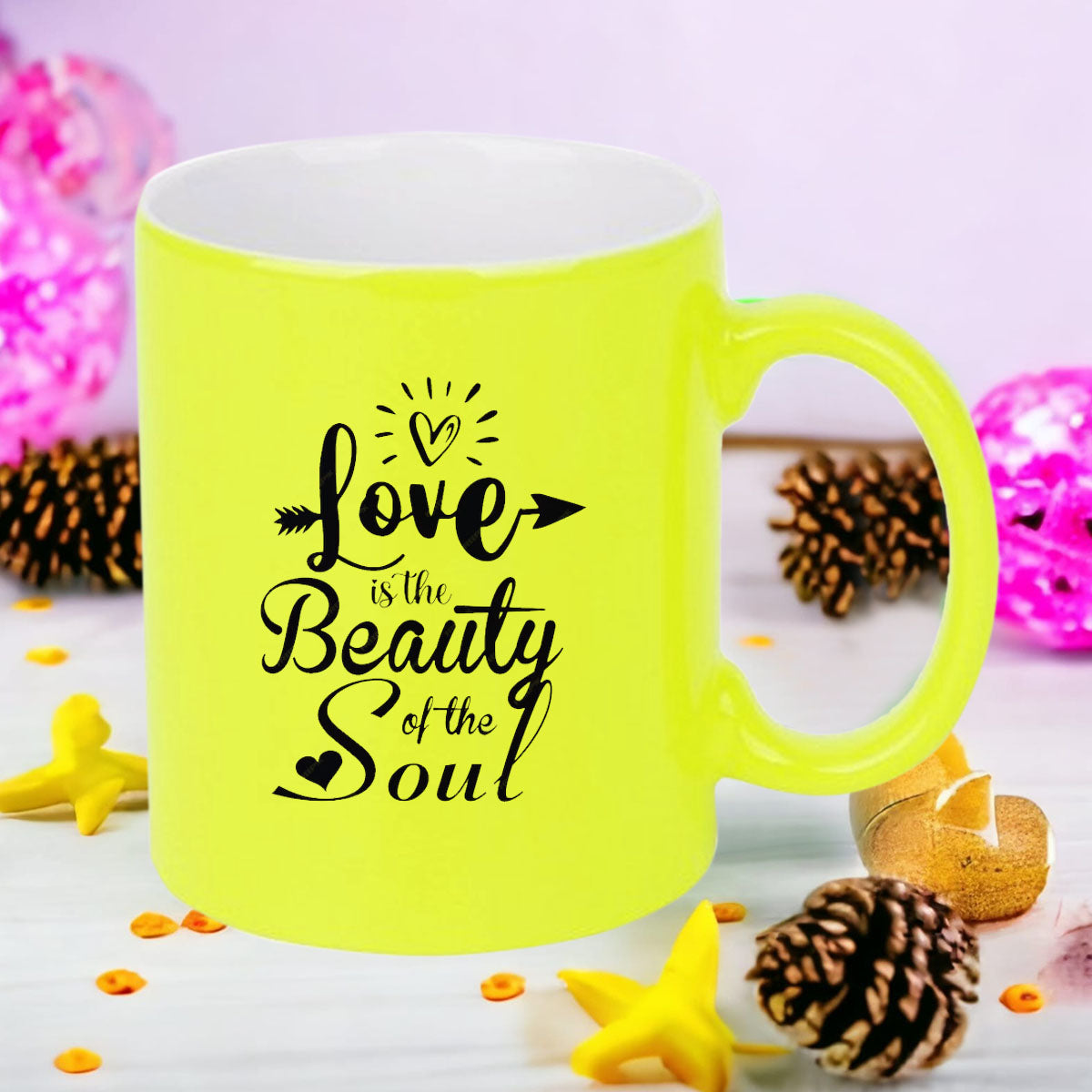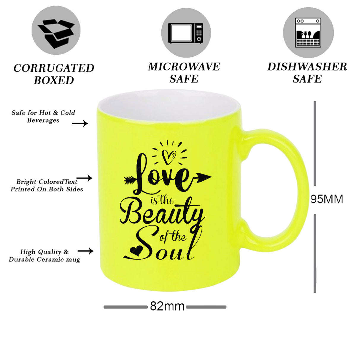 Chillaao Love is the beauty of the soul neon Yellow mug