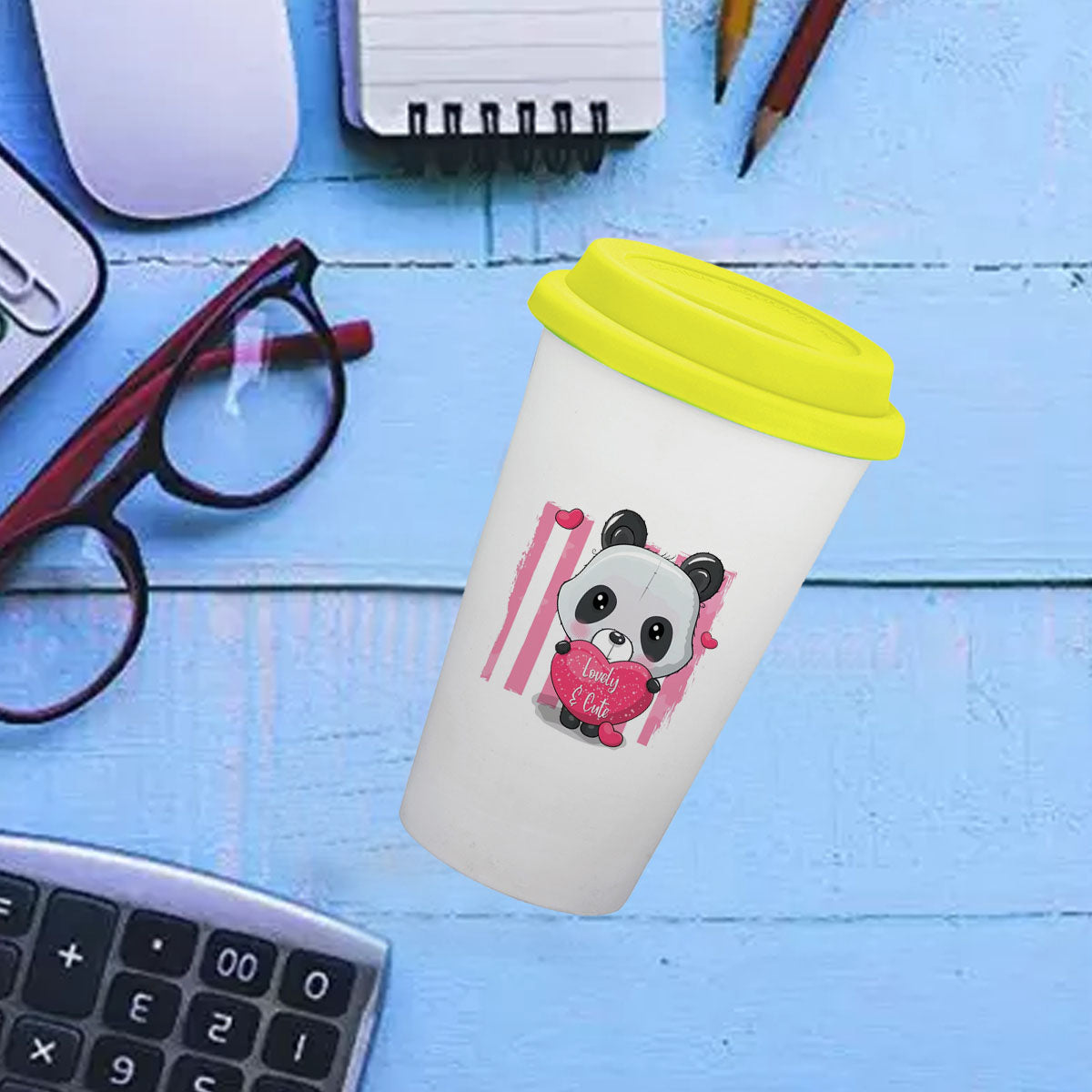 Chillaao Lovely & Cute Ceramic Tumbler Yellow Lid