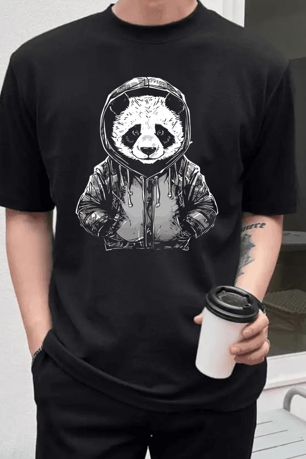 Chillaao Cool panda wearing hoodie Oversize T- Shirt